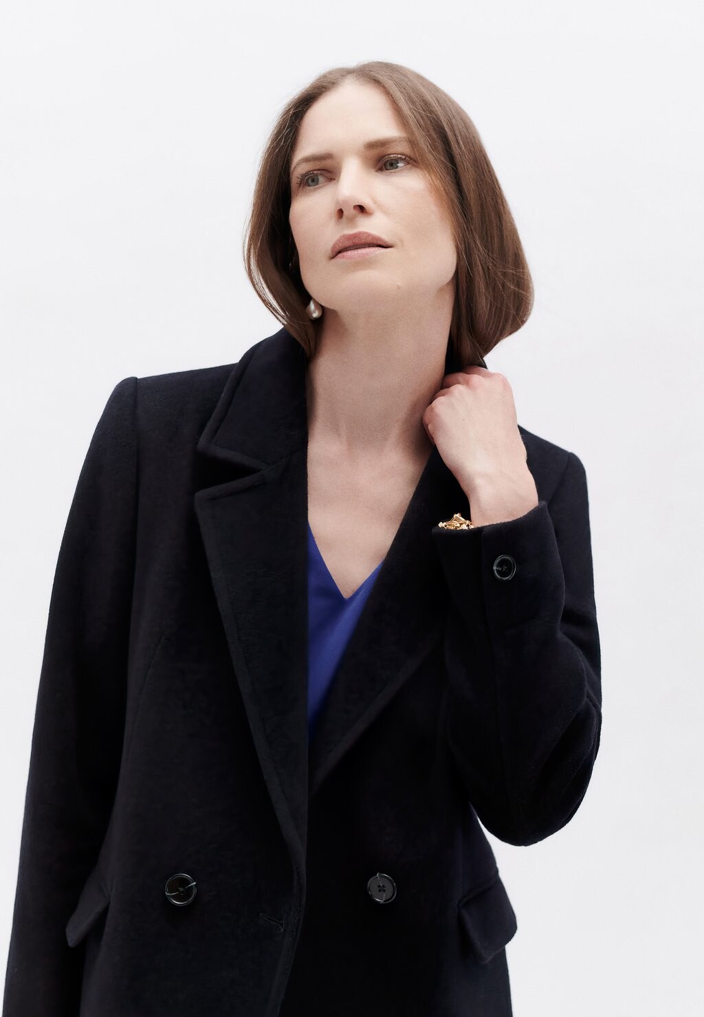 Материал внешней ткани: 60 % шерсть, 30 % полиамид, 10 % кашемир