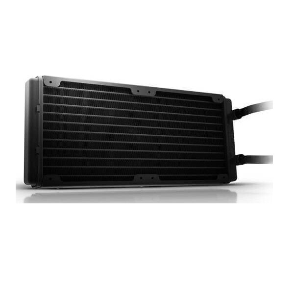 В основе данной модели используется медный водоблок и алюминиевый радиатор, что вкупе с двумя вентиляторами на 120 мм, а также скоростью вращения до 2500 об/мин обеспечивает поток воздуха до 59.25 CFM и эффективное охлаждение компонентов. Уровень шума при максимальной производительности не превышает 39.5 дБ. Это обусловлено особой геометрией лопастей вентиляторов, а также использованием в основе конструкции подшипников 2-го качения, которые также отличаются высокой надежностью и большим рабочим ресурсом.