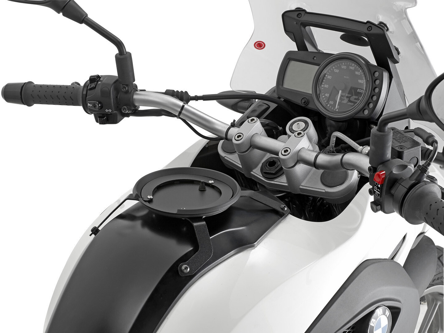 Система быстрого крепления Tanklock для крепления рюкзаков для танков к мотоциклу.