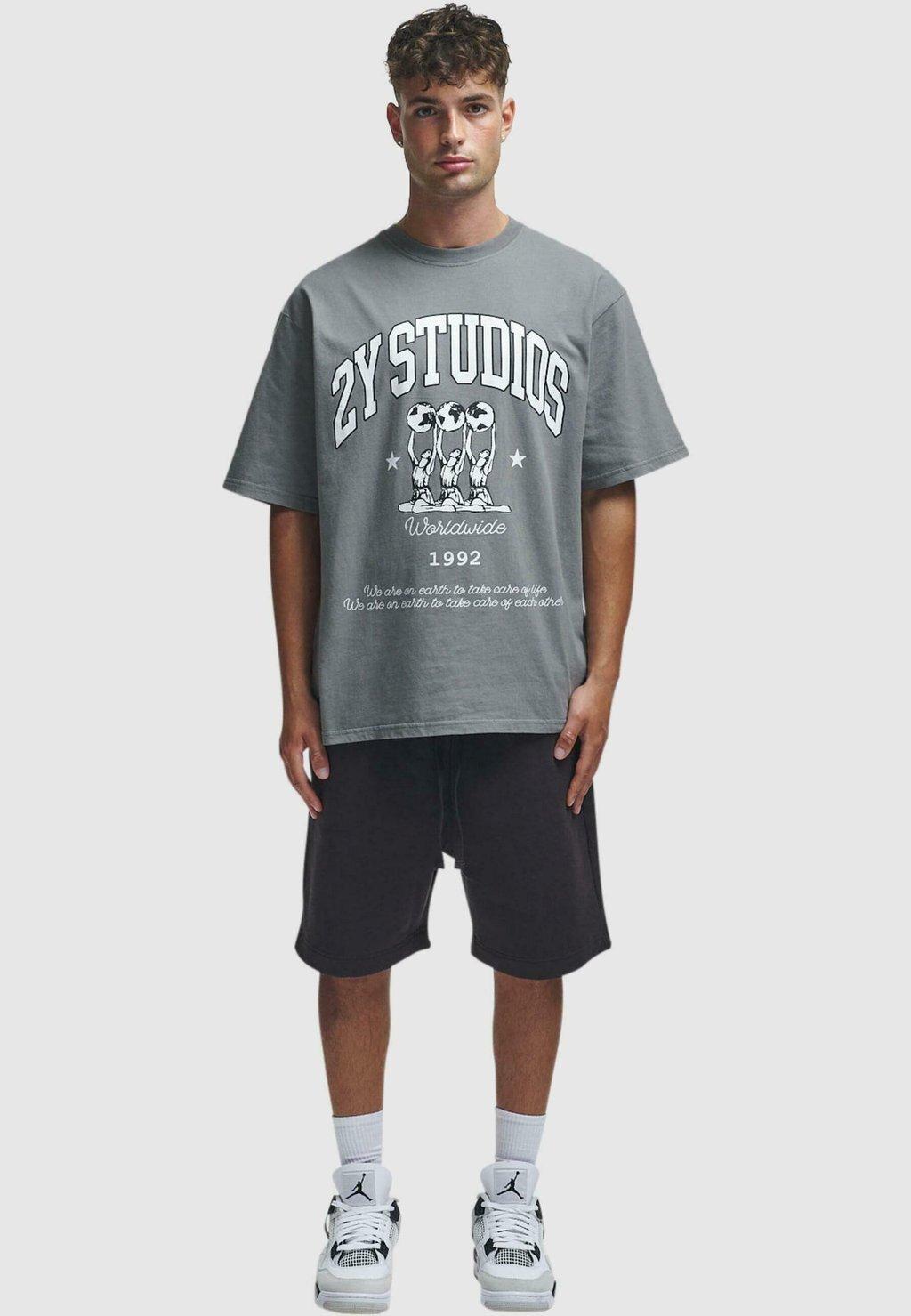 Футболка с принтом GLOBUS 2Y Studios, цвет washed grey