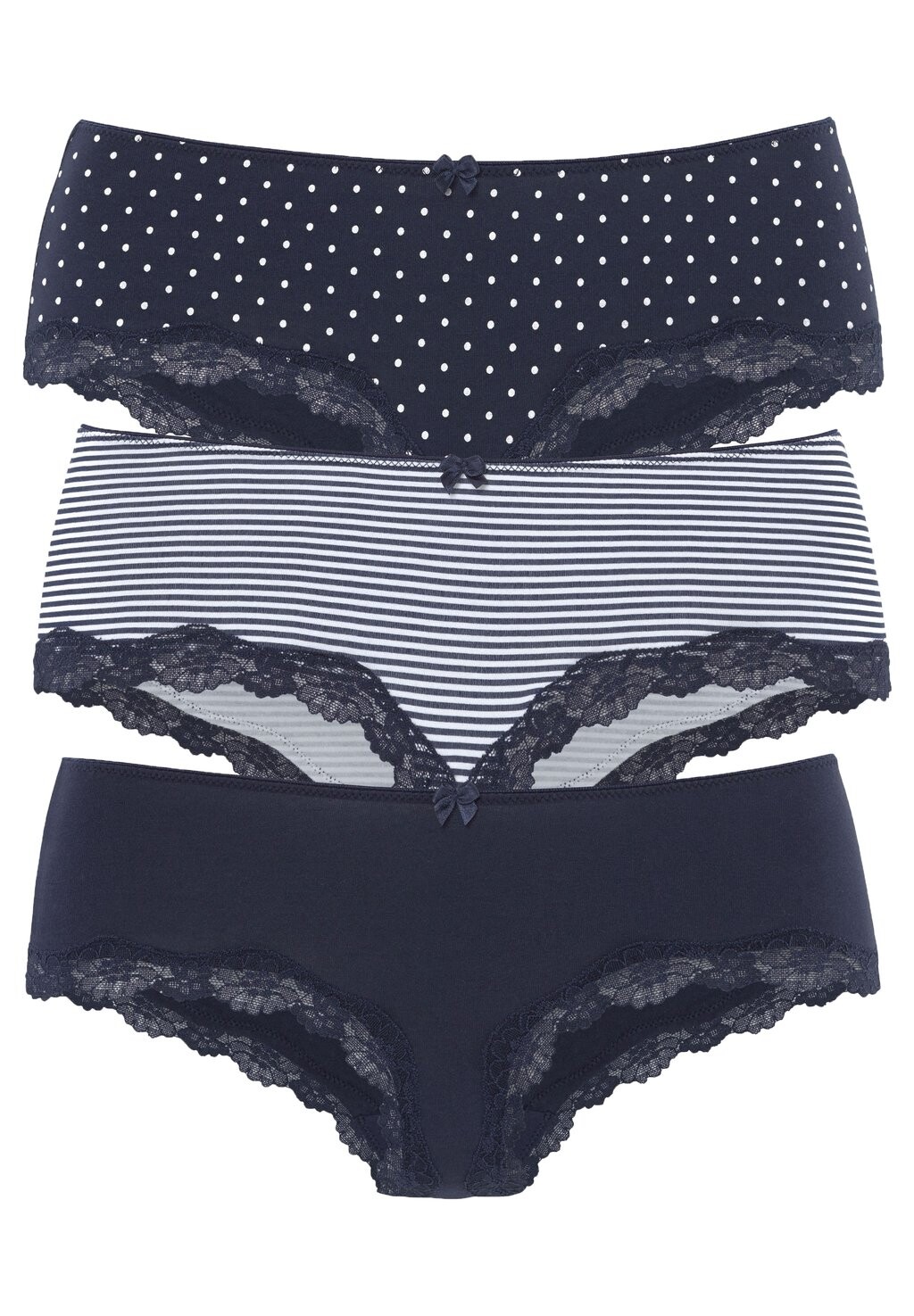 Трусы 3 PACK LASCANA, цвет marine gepunktet gestreift uni