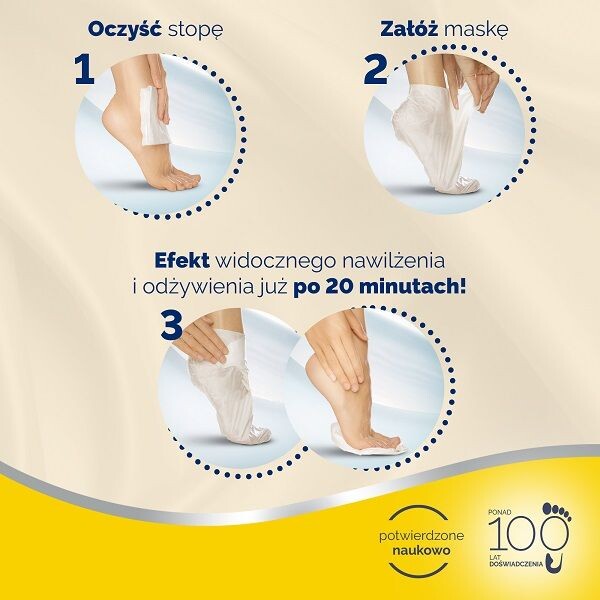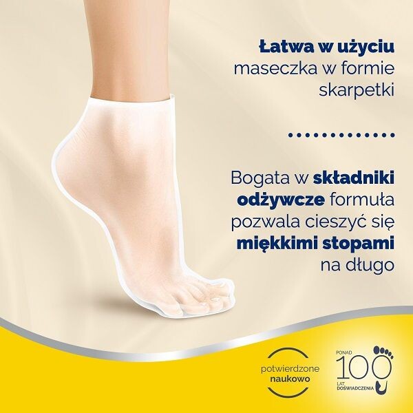 Для эффекта исключительно красивых стоп необходимо надеть носки и снять через 20 минут. Маска для ног Scholl впитывается как крем и не требует смывания.