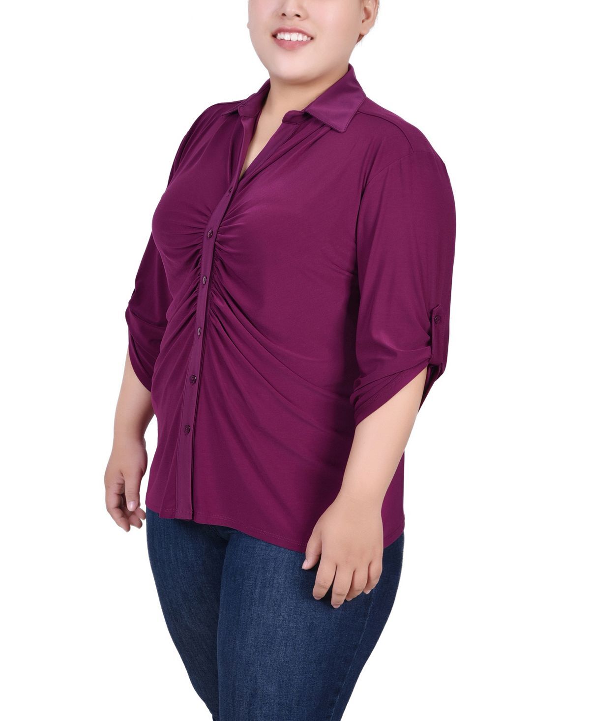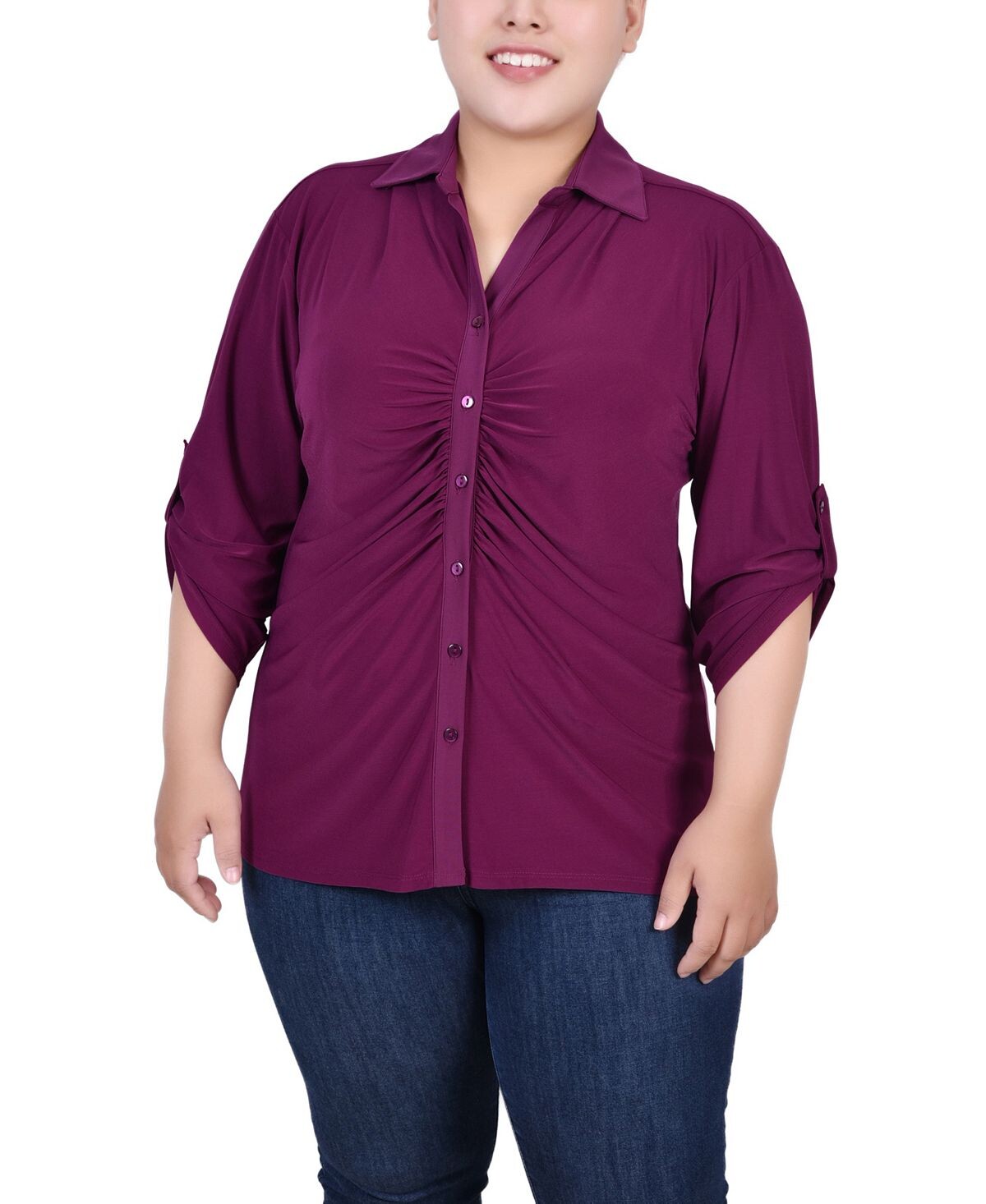Все дело в деталях этой блузы NY Collection с сборками спереди. Рукава длиной 3/4 и плиссированные плечи завершают образ.