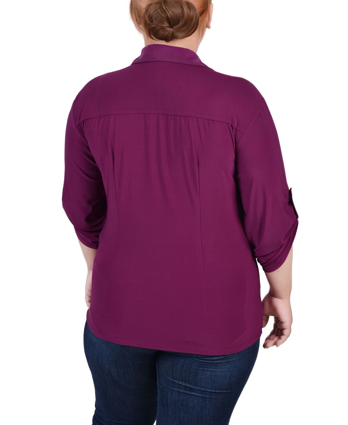 Плюс размер 3/4 roll tab с рюшами спереди NY Collection, мульти