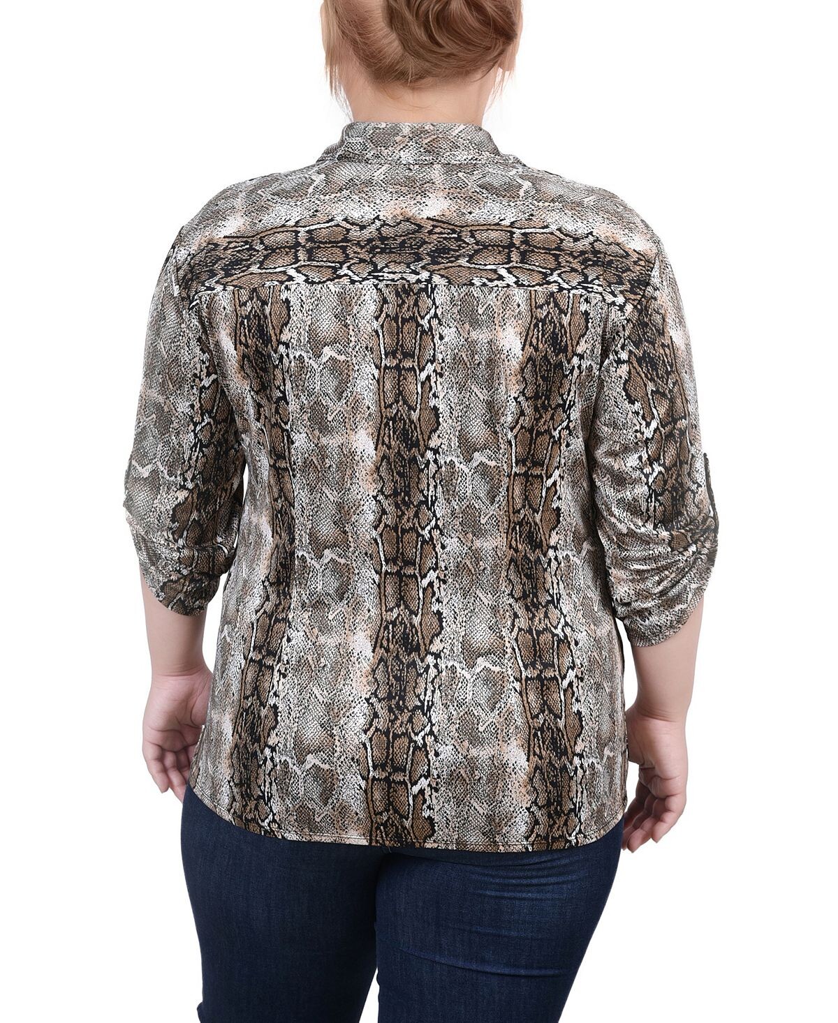 Плюс размер 3/4 roll tab с рюшами спереди NY Collection, мульти