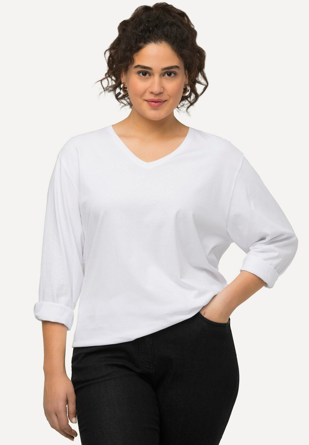 Свитер вязаный BASIC-V Ulla Popken, цвет snow white