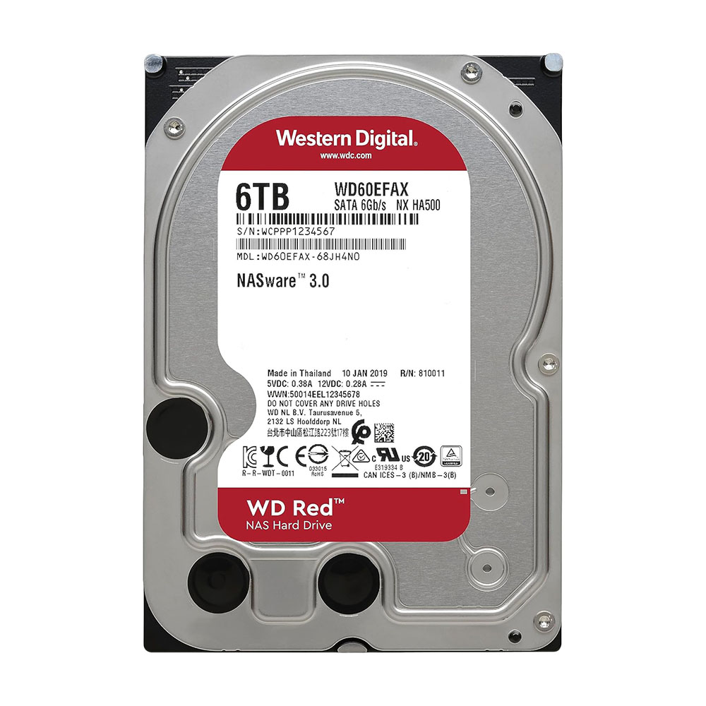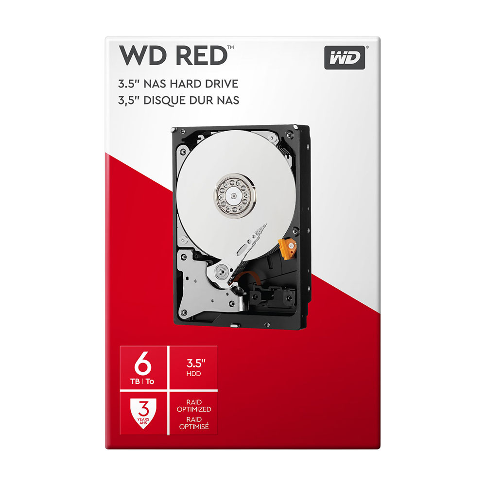Western Digital WD Red емкостью 6 ТБ, разработанный для работы с повышенными нагрузками, работает с использованием интерфейса SATA III 6 Гбит/с, кэш-памяти 256 МБ и скоростью вращения 5400 об/мин, что обеспечивает бесперебойную передачу данных со скоростью до 180 МБ/с. Он отличается высоким уровнем надежности: 600 000 циклов загрузки/выгрузки, <1 из 1014 невосстановимых ошибок чтения на считанный бит, средства управления восстановлением после ошибок и среднее время безотказной работы 1 000 000 часов для систем NAS с 1–8 отсеками. В этот диск также встроены защита от шума и вибрации, а WD NASware 3.0 помогает повысить совместимость системы, позволяя легче интегрировать накопители WD Red в существующую сетевую инфраструктуру.