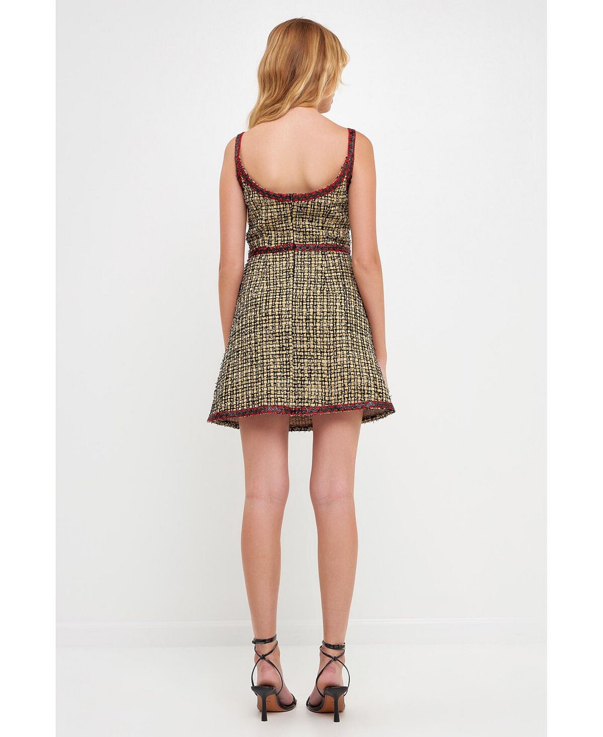Хотя это мини-платье можно носить с подходящим жакетом, оно так же красиво смотрится само по себе. Великолепная твидовая ткань подчеркнута контрастной отделкой и привлекательным силуэтом А-силуэта. Как только вы наденете это твидовое мини-платье, вы почувствуете себя максимально элегантно!