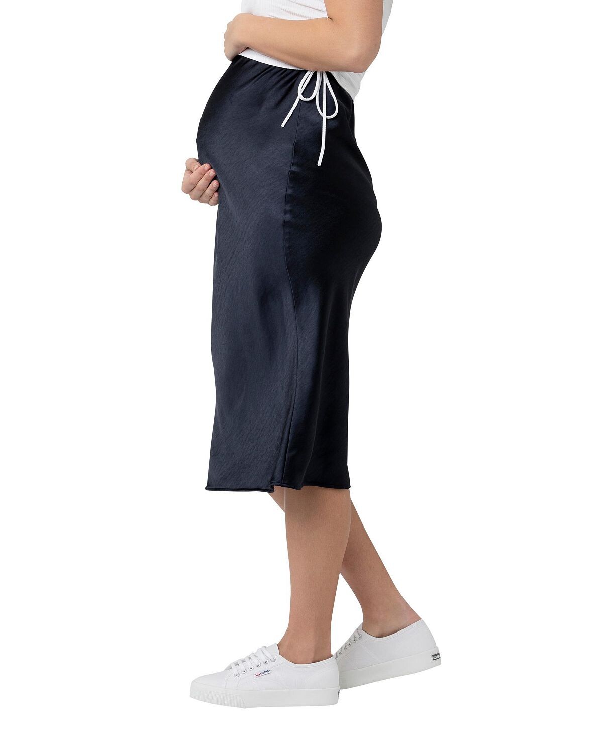 Наша атласная юбка Lexie сконструирована так, чтобы сидеть высоко над животом, и скроена по косой, чтобы она хорошо сидела на вас на протяжении всей беременности. Стиль с укороченной вязкой или завязанной футболкой.