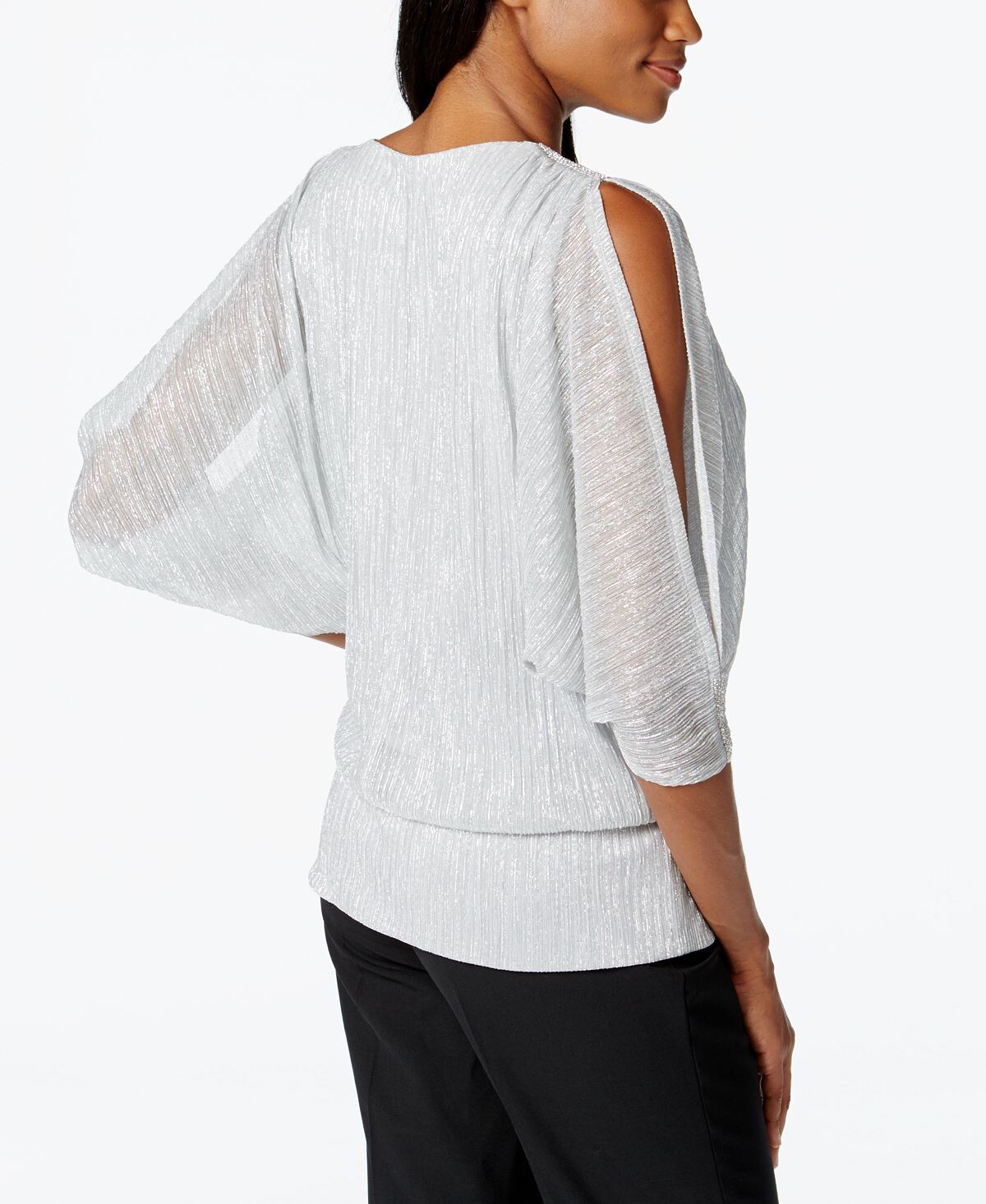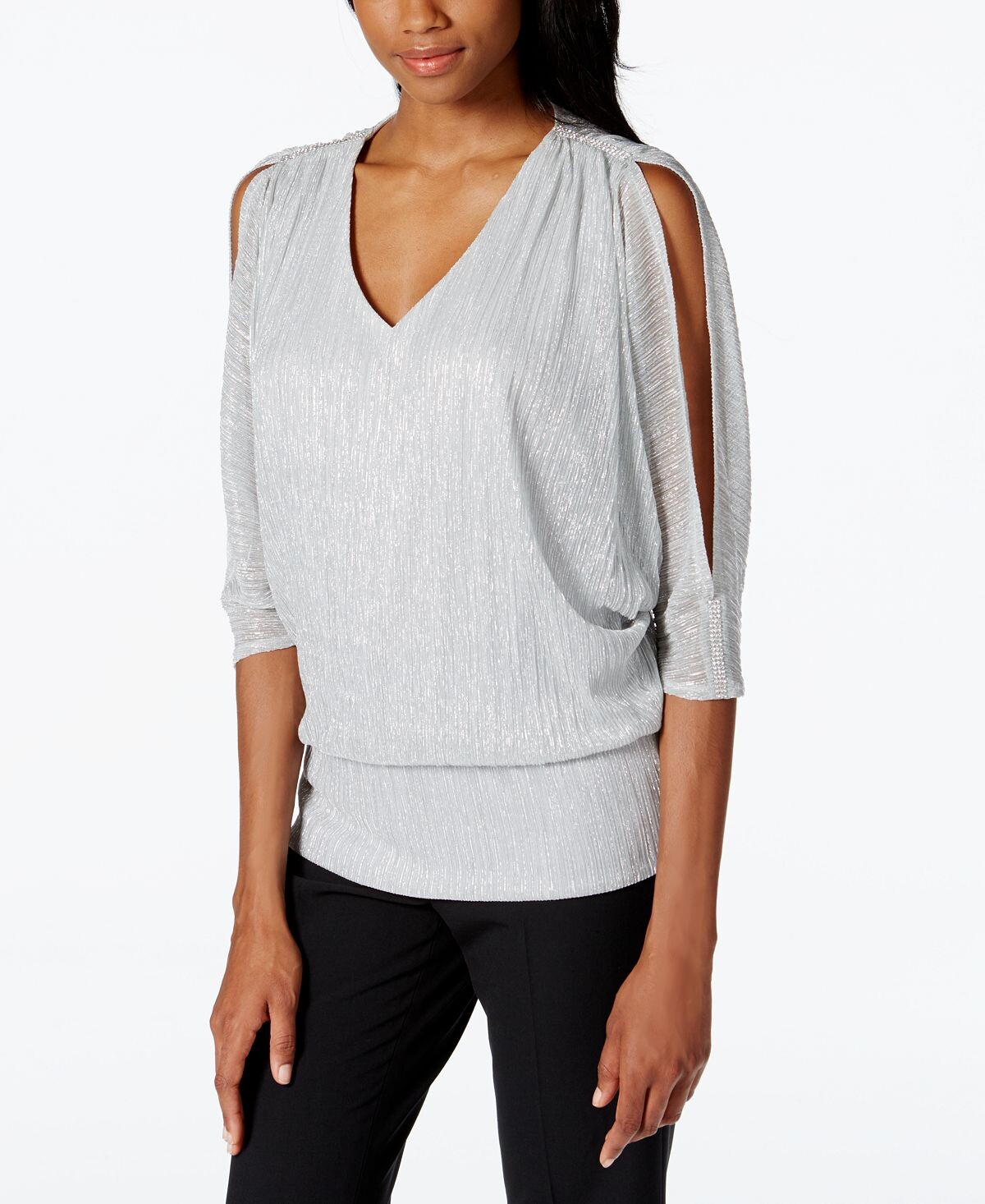 Блузон цвета металлик с разрезными рукавами MSK, серебряный