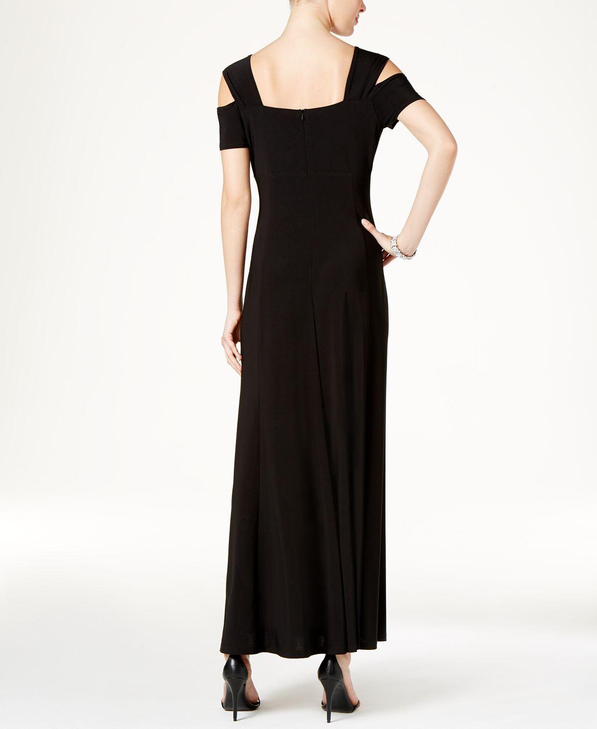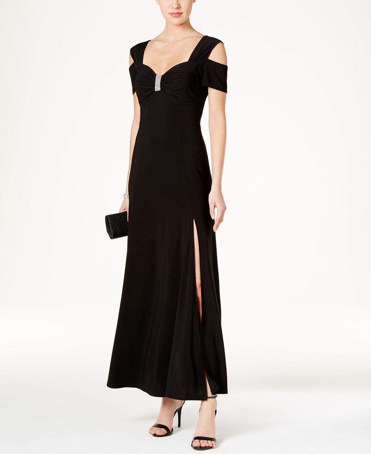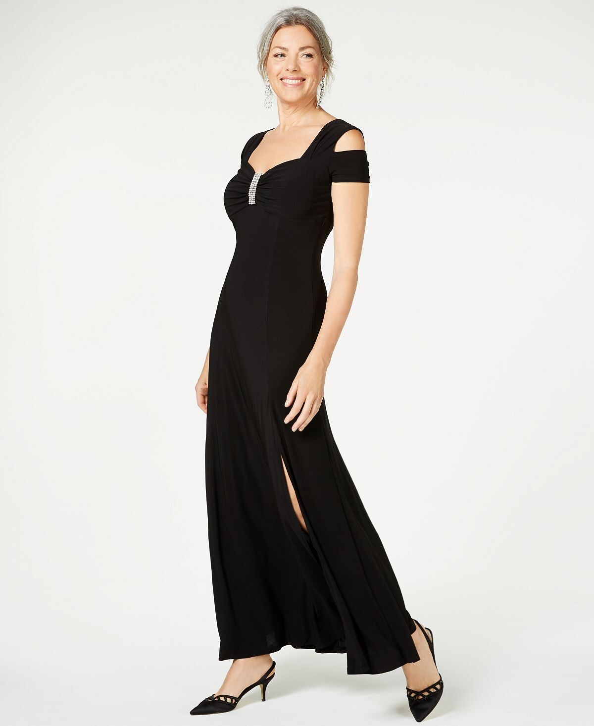 Сделайте эффектный выход в этом потрясающем платье R&M Richards с открытыми плечами и красивой брошью.