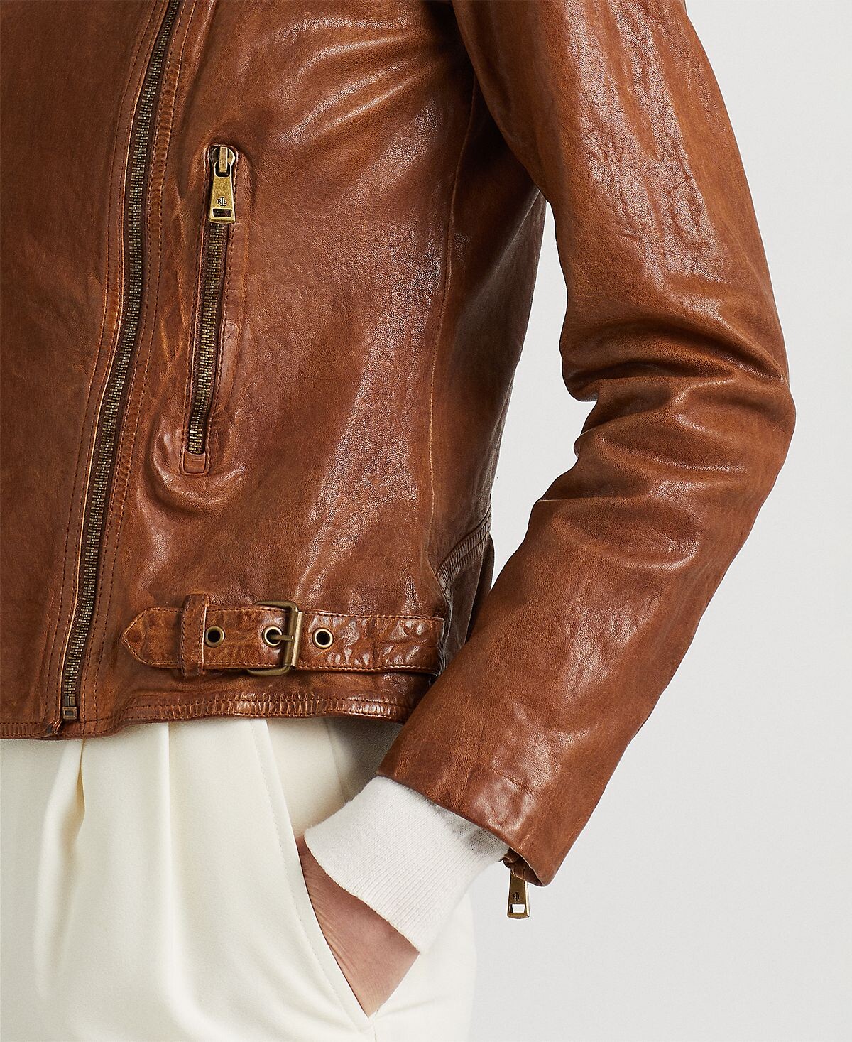 Эта байкерская куртка, изготовленная из эластичной натуральной овечьей кожи, после стирки и стирки выглядит идеально поношенной с первого дня.