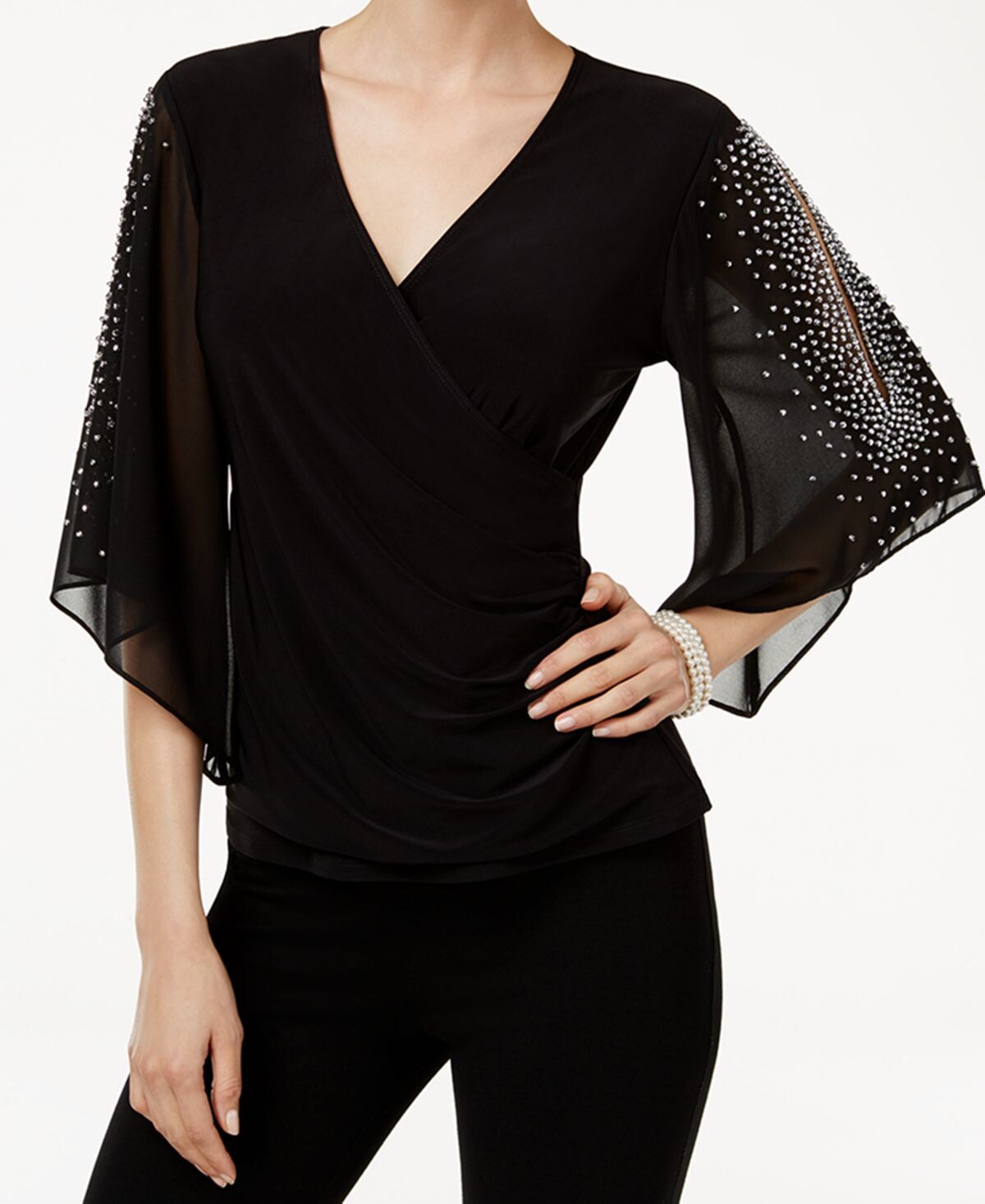 Украшенный шифоновый топ с рукавами MSK, черный 8 033₽
