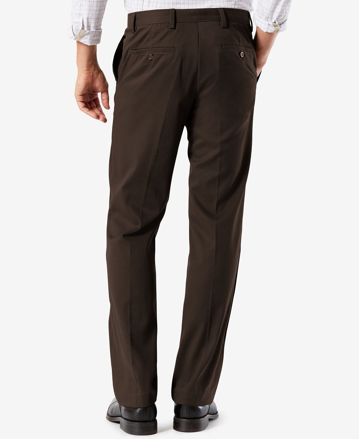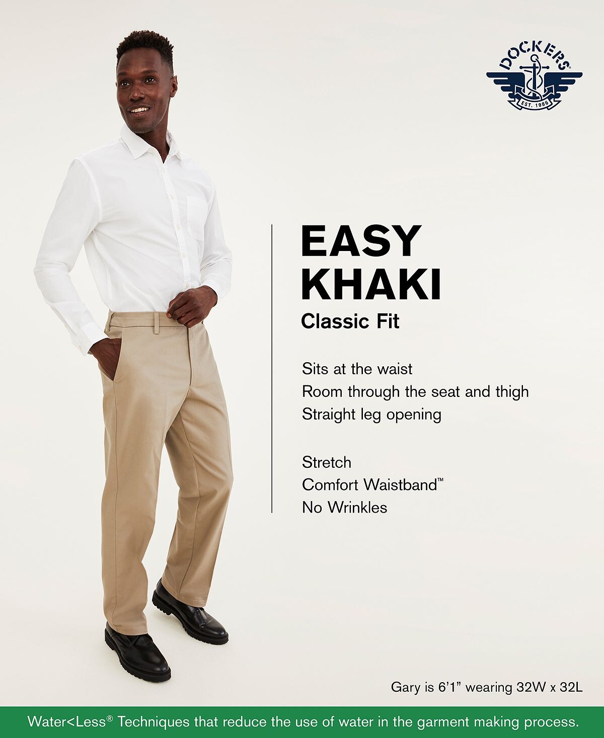 Dockers® обеспечивает просторную и непринужденную посадку в вашем классическом образе с помощью этих ультрамягких брюк цвета хаки с плоским передом, выполненных из устойчивой к морщинам эластичной ткани для дополнительного комфорта и свободы движений.