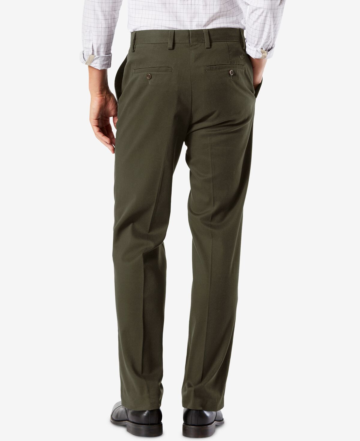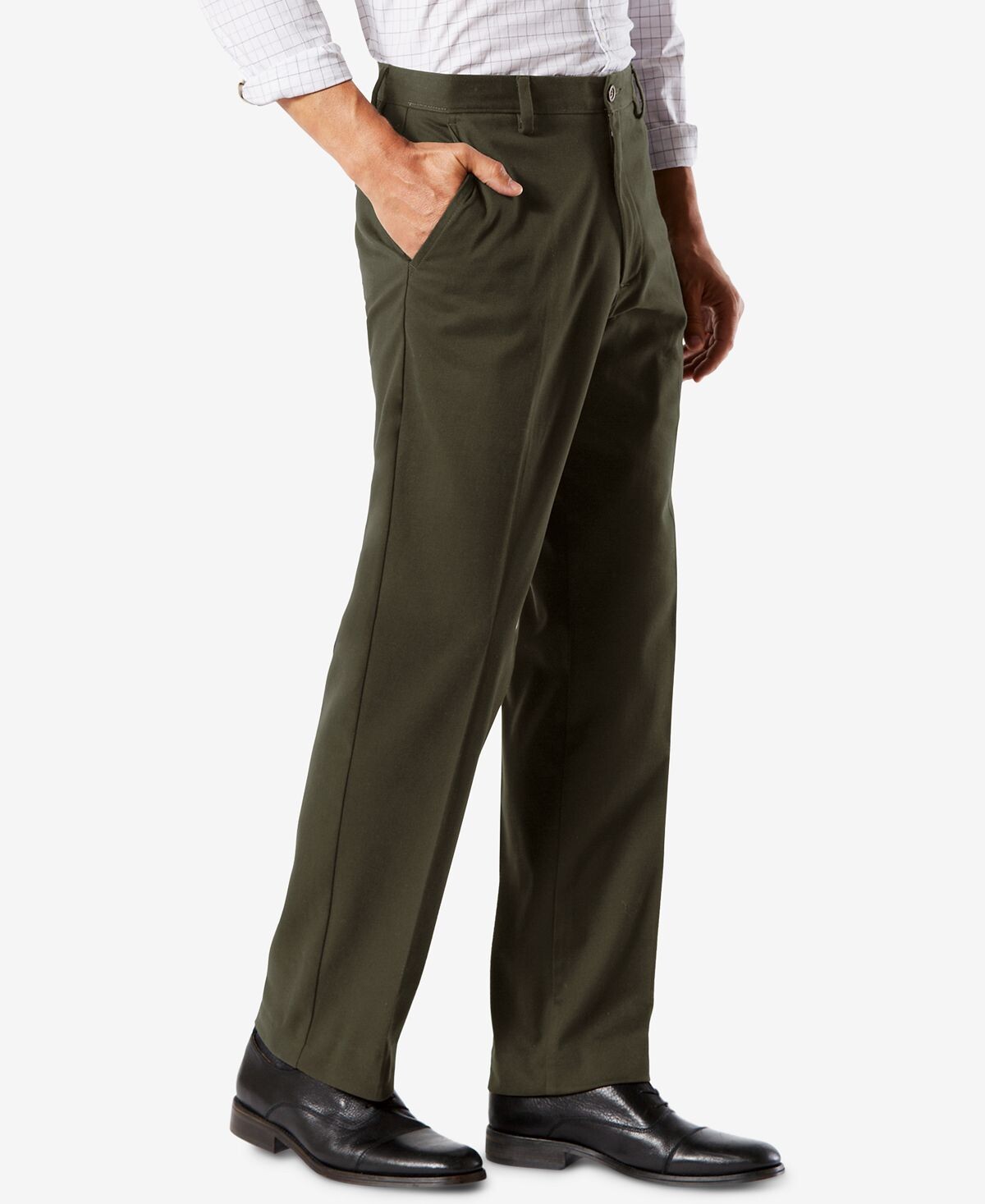 Dockers® обеспечивает просторную и непринужденную посадку в вашем классическом образе с помощью этих ультрамягких брюк цвета хаки с плоским передом, выполненных из устойчивой к морщинам эластичной ткани для дополнительного комфорта и свободы движений.
