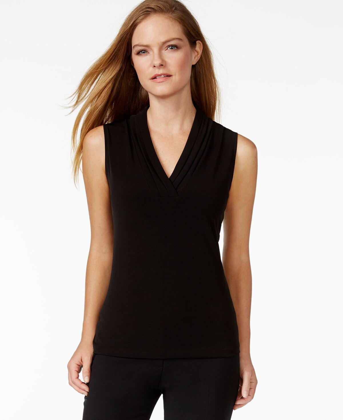 Добавьте в свой гардероб идеальную многослойную модель топа без рукавов Anne Klein с плиссированным вырезом.