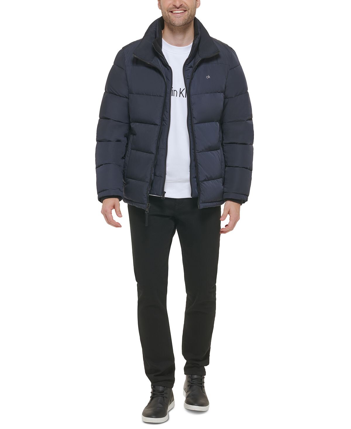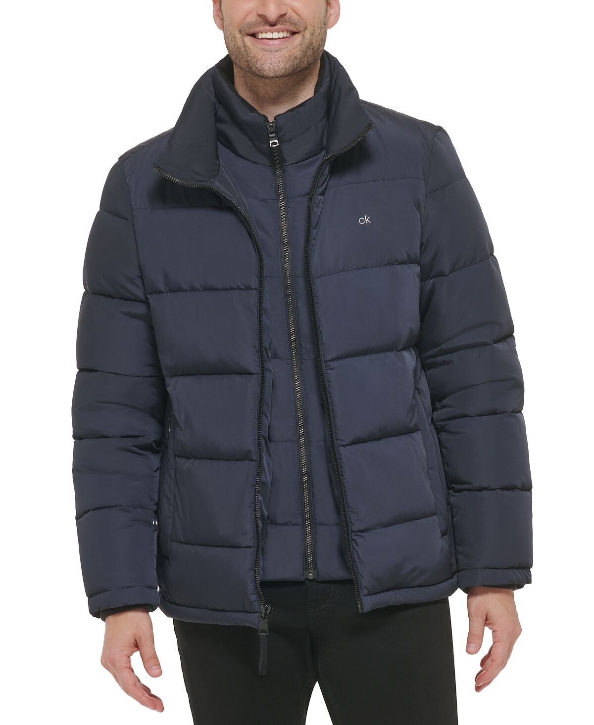 Мужской пуховик Calvin Klein с нагрудником — практичная верхняя одежда для холодного сезона, в которой сочетаются аккуратный городской силуэт и функциональные детали. Модель выполнена в тёмно-синем цвете и легко вписывается в повседневные образы: от джинсов и ботинок до более собранных комплектов в стиле smart casual.