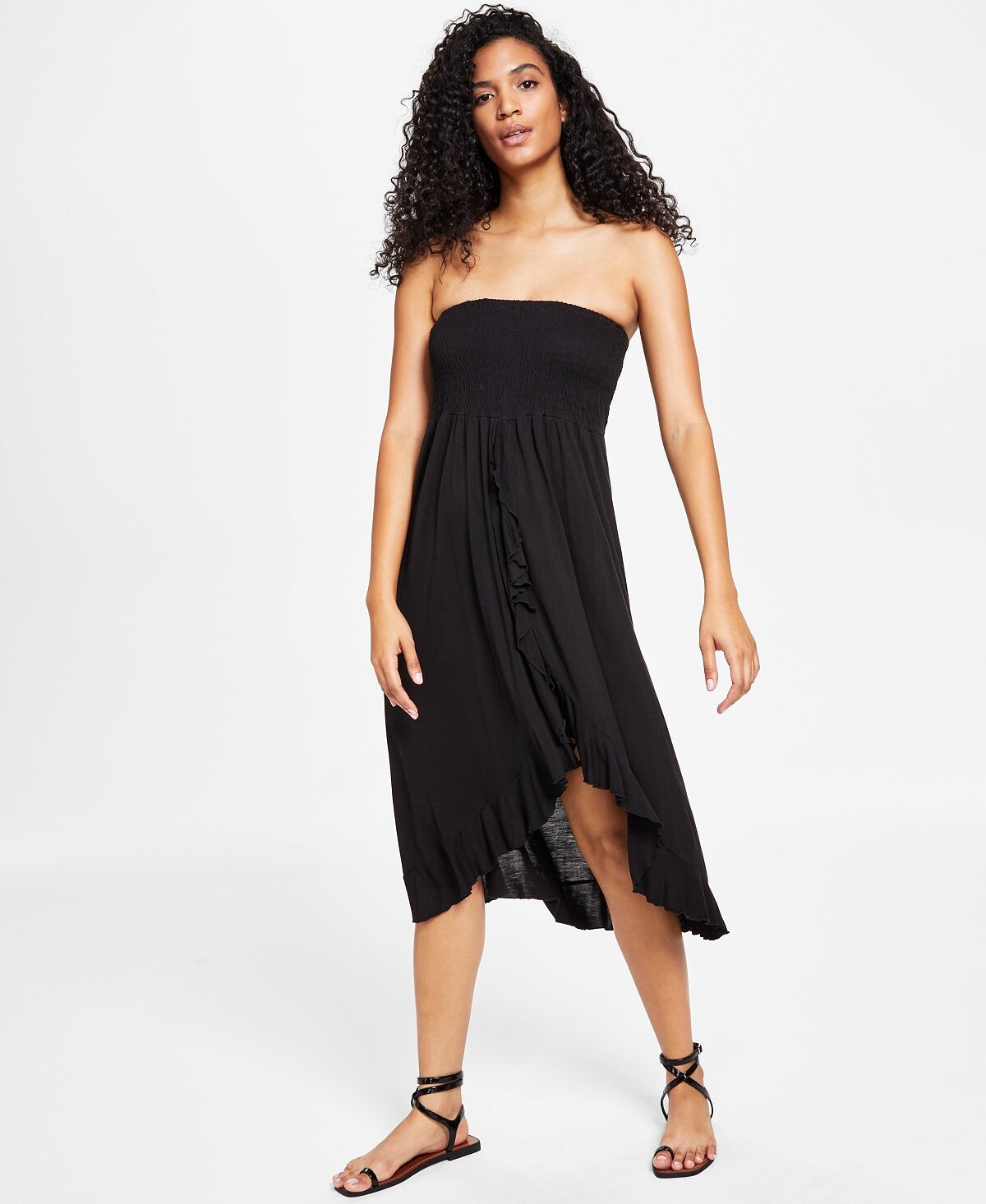 Романтические оборки и очаровательный высокий подол придают этому пляжному платью без бретелек стиль Raviya, которое вы захотите надеть на пляж и не только.