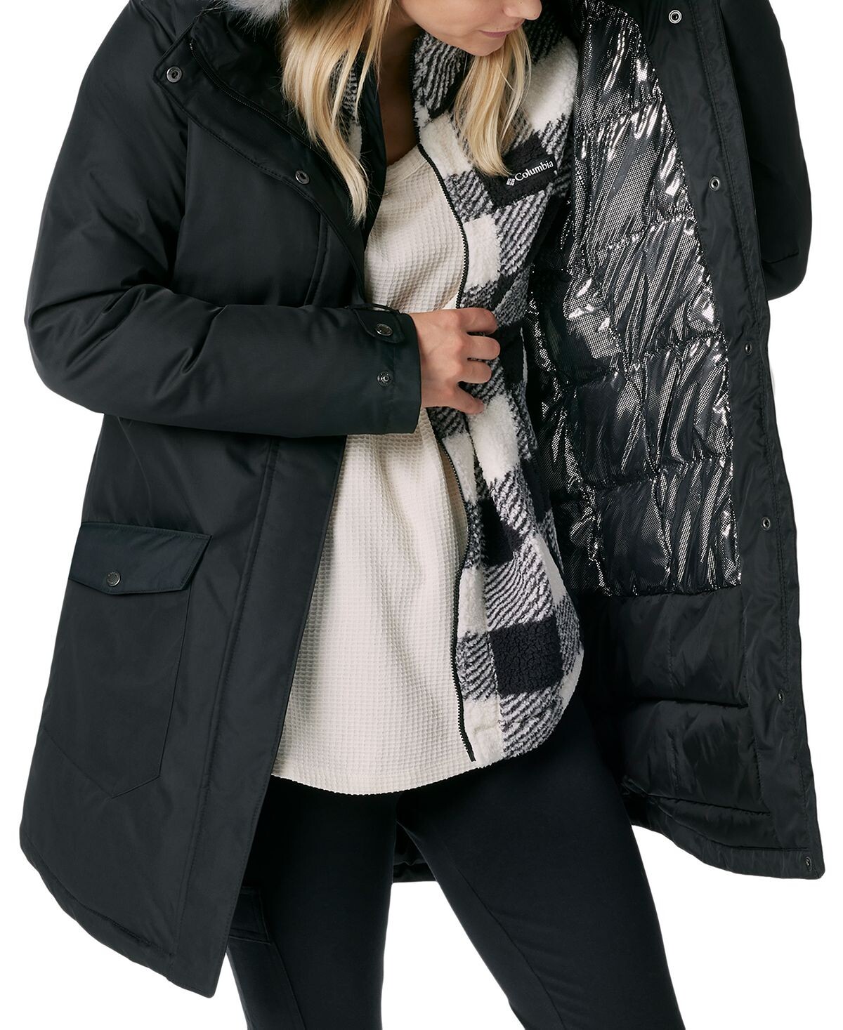 Полиэстер, Машинная стирка, Теплоотражающая подкладка Omni-Heat™, Прикрепленный регулируемый капюшон с флисовой подкладкой, отделкой из искусственного меха и защитой подбородка двухсторонняя застежка-молния спереди