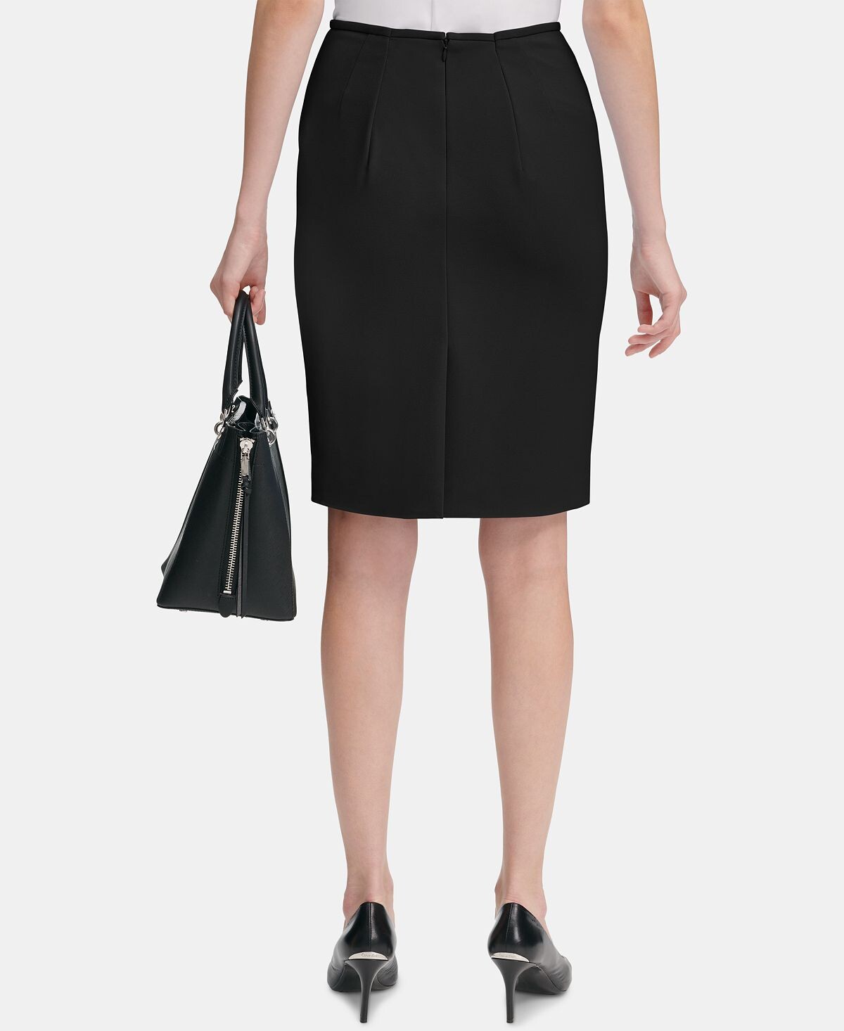 Мягкий материал из крепа с аквалангом подчеркивает классический силуэт юбки-карандаш от Calvin Klein, идеально подходящей для зала заседаний совета директоров.