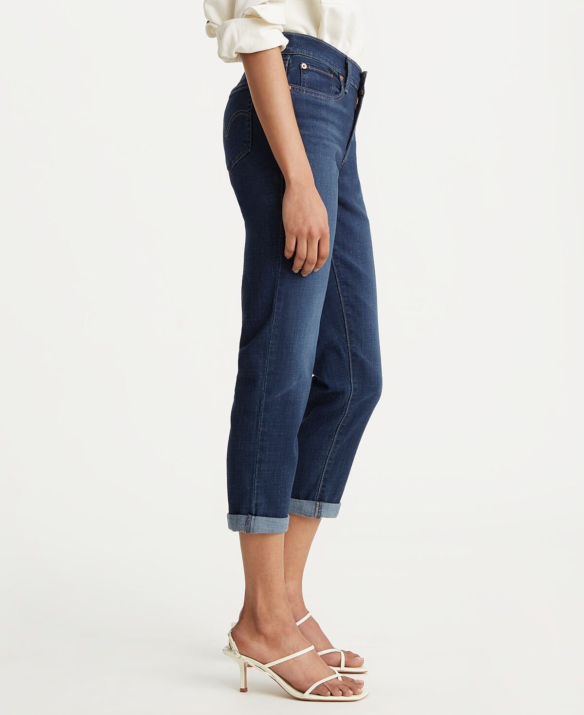 Модель, позаимствованная у мальчиков, подчеркивает непринужденную привлекательность этих непринужденных джинсов-бойфрендов Levi's® с зауженными штанинами и изящными потертыми деталями.