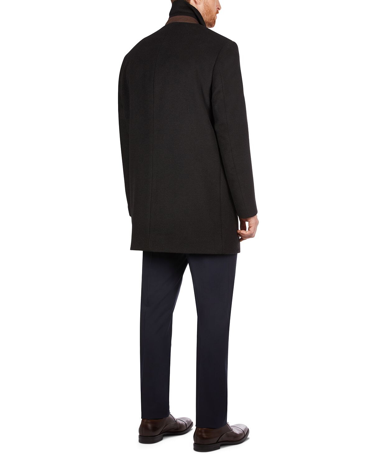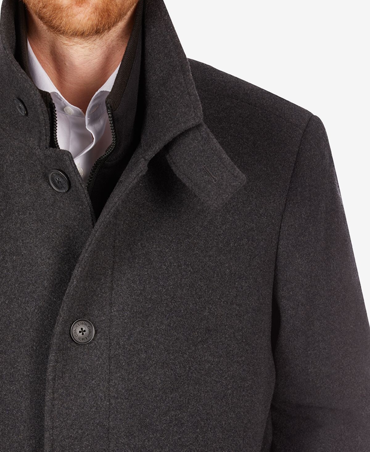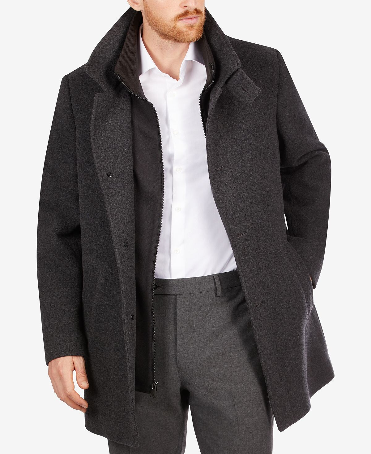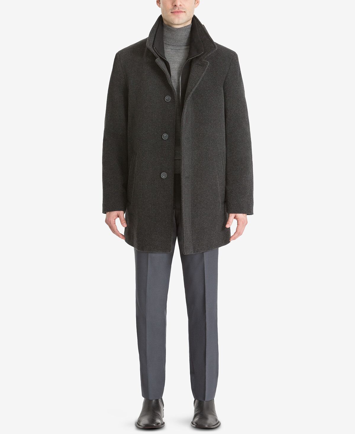 Новое пальто Calvin Klein имеет нагрудник на молнии спереди и внешний слой на пуговицах с классическим воротником с вырезом.