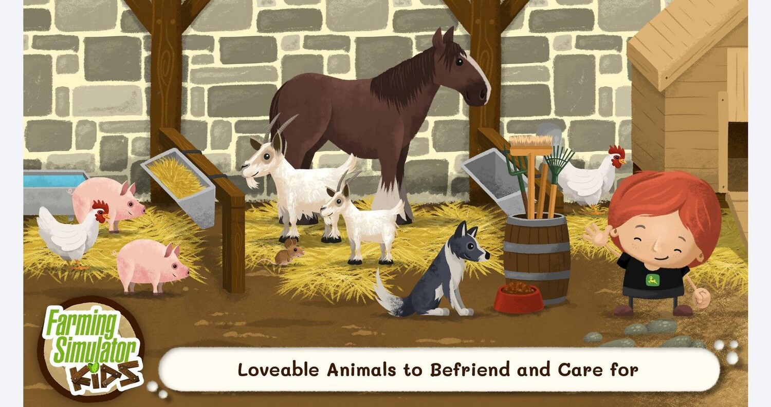 Farming SimulatorKids знакомит подрастающее поколение с красочным и веселым миром сельского хозяйства и цветущей природы, обучая и развлекая их в удобной для детей и защищенной среде на Nintendo Switch. Поскольку игровой процесс сосредоточен на аудиовизуальном представлении без текста, Farming Simulator Kids подходит для всех возрастов и в него легко играть. Сельское хозяйство и мини-игры. Farming Simulator Kids с милой эстетикой приглашает юных игроков жить уютной фермерской жизнью. Дети исследуют фермы, чтобы выращивать и собирать здоровый урожай, сажать высокие и красивые деревья или ухаживать за очаровательными сельскохозяйственными животными, такими как коровы, куры или гуси, в своих конюшнях. Поскольку большие тракторы и другие транспортные средства являются обязательными, дети могут управлять различными машинами известного производителя John Deere. Изучение ценности продукции:. В игре много мини-игр, от садоводства до приготовления сэндвичей. Маленькие фермеры посещают собственный фермерский рынок, чтобы почувствовать ценность свежих продуктов, которые они выращивали и о которых заботились, и одновременно создают незабываемые и познавательные фермерские истории. Они могут обмениваться предметами в обменном магазине, создавать вкусные блюда из продуктов или просто отдыхать у себя дома и знакомиться с милыми персонажами, с которыми можно общаться.