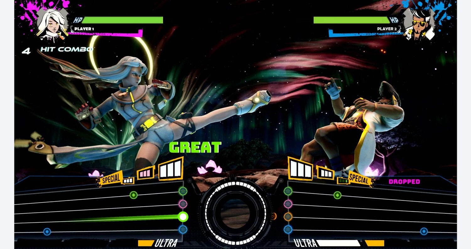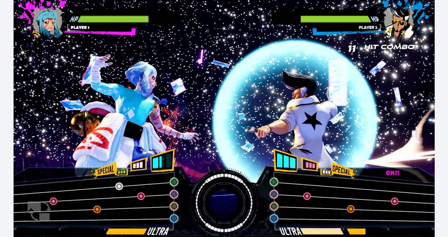 Битва в такт — участвуйте в невероятных музыкальных битвах в этом соревновательном ритм-боевике. Безграничный потолок навыков — сложность треков будет увеличиваться до тех пор, пока не останется только один боец. Более 40 оригинальных песен. Каждая из них имеет свои уникальные и сложные треки, которые предстоит освоить. Вселенная — это ваша сцена. Управляйте 12 совершенно разными персонажами, каждый со своим стилем игры, на 8 динамических сценах, расположенных по всей вселенной.