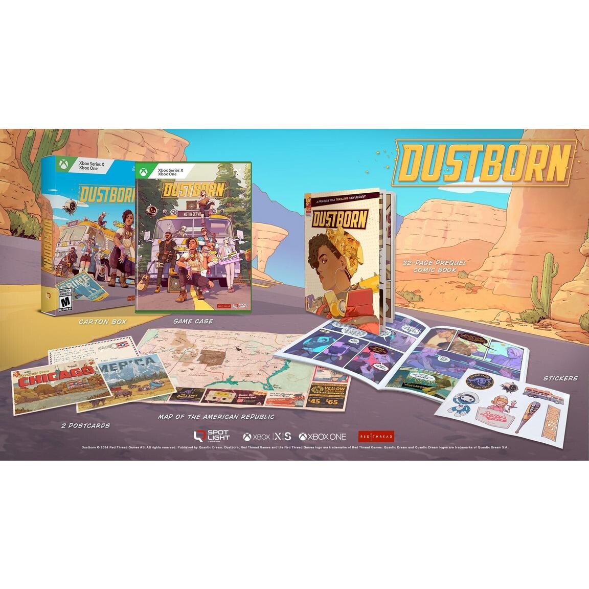 Dustborn — это однопользовательская сюжетно-приключенческая игра о надежде, любви, дружбе, роботах… и силе слов. Вы играете за Пакса: изгнанника, мошенника, аномала — с возможностью использовать язык в качестве оружия. В поисках новой жизни и выхода Пакс был нанят для перевозки важной посылки из Пасифики в Новую Шотландию через территорию Американской Республики, контролируемой Правосудием. Звучит как законная причина для поездки, не так ли? Так что собирайте чемоданы, соберите команду со своими уникальными способностями и приготовьтесь путешествовать по стране! Исследуйте потрясающие нео-западные пейзажи альтернативной истории Америки на экскурсионном автобусе, управляемом роботом, и останавливайтесь в дюжине мест по дороге, чтобы собрать свою команду, управлять отношениями, выполнять миссии и решать все более сложные задачи. Но люди, у которых вы украли посылку, хотят ее вернуть, а авторитарное правосудие преследует вас по пятам, так что не забудьте взять с собой бейсбольную биту! (И, о да, вы путешествуете под прикрытием как панк-рок-группа, так что вам обязательно нужно освежить свои музыкальные навыки перед следующим выступлением.). В конце пути лежит спасение… но чтобы добраться туда, вам придется пересечь целый континент.