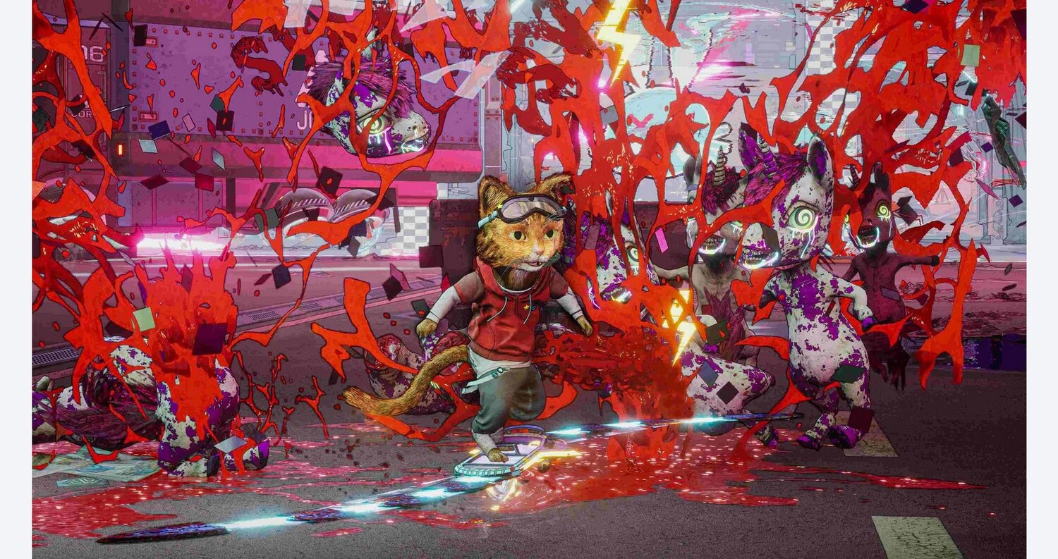 Играйте за крутого кота — Гори, один из последних прототипов синтетических домашних животных, тайно вывезенных из Cool Toyz Inc перед уничтожением, милый, приятный, но чрезвычайно смертоносный. С такими друзьями... - Спасите галактику вместе с командой самых невероятных героев, от ФРАНА К. и CH1-P до множества неожиданных союзников, с помощью сценария, наполненного сердечным и взрослым юмором, столь же острого, как лезвия ФРАНА К.! . Убивайте стильно — сражайтесь с кровожадными ордами Очаровательной армии в динамичных боях, где вашим оружием станет ховерборд! Мощное скольжение, измельчение и вращение, чтобы вызвать максимальную резню и высокие баллы за комбо. Повышение уровня: от залитых неоном городских улиц и фабрик игрушек, наполненных смертельными токсинами, до запутанных карнавалов и внутренностей игровых автоматов — каждый уровень наполнен смертельными опасностями окружающей среды и мутировавшими игрушками, которые доводят ваши боевые навыки и навыки платформера до предела. Lock And Load — у этого кота есть когти… и разрушительный арсенал взрывчатки, острого как бритва оружия и открываемых приемов, позволяющих опустошить Очаровательную армию самым жестоким и стильным способом. Охота за секретами. Используйте свои экстремальные навыки паркура на ховерборде, чтобы исследовать каждый уголок уровня в поисках предметов коллекционирования, которые открывают радикально новые фильтры, наряды и стили меха для Гори!. Наполнено кровью. Раскрасьте город в красный цвет с помощью лезвий ФРАНА К., нарезая кубиками беспричинные расчленения — телесный ужас и самые извращенные игрушечные конструкции, которые вы когда-либо видели! Взрывной и саундтрек. Катайтесь на коньках и катайтесь под оригинальный душераздирающий саундтрек, полный энергии в разных жанрах.
