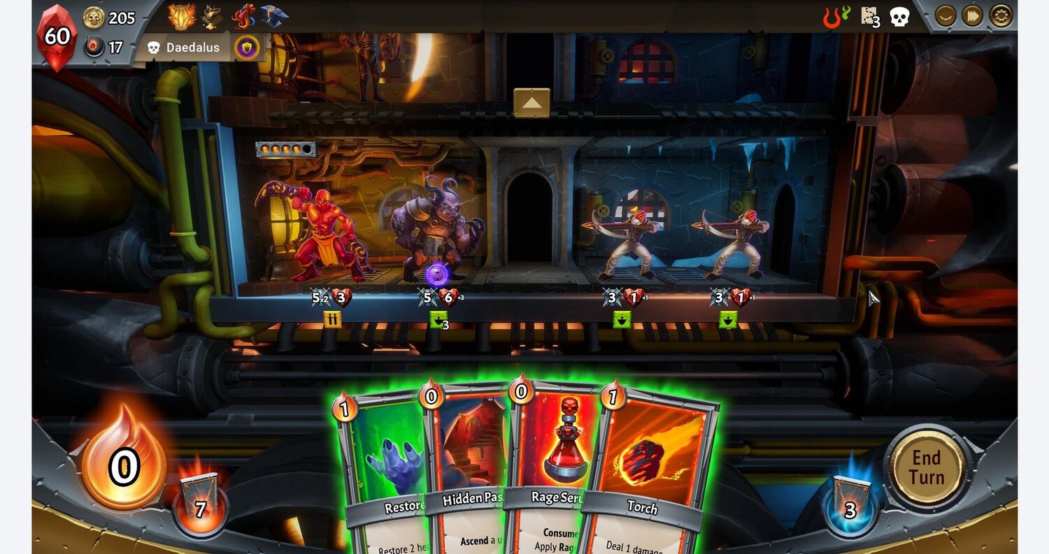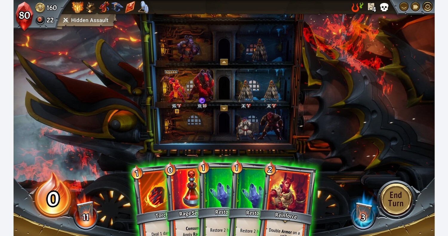 Monster Train привносит новый стратегический уровень в сборку колод в стиле рогалик с тактическим поворотом: защищайте не одно, а три вертикальных поля битвы одновременно, сражаясь, чтобы защитить последний костер от сил небес. Ни одно прохождение не бывает одинаковым, каждый раз это новый вызов. Вы никогда не будете играть одной и той же колодой дважды! Ад замерз. Только вы сможете защитить последний горящий костер от сил небес и восстановить ад. Чтобы вернуть ад, вам нужно включить питание. Тщательно выбирайте свой маршрут: разные места дают разные преимущества. Улучшайте своего чемпиона, получайте осколки Пакта и их преимущества, нанимайте мощные отряды, улучшайте карты, получайте пассивные бонусы или дублируйте любую карту из своей колоды. На выбор предлагается шесть кланов, каждый из которых имеет свой уникальный и удивительный игровой процесс. Выберите свой основной и поддерживающий клан, чтобы получить доступ ко всем картам обоих. Во время забега вы сможете улучшать карты, смешивая и сопоставляя улучшения, чтобы открыть новые пути к победе. Вы даже можете дублировать свою любимую карту в специальных узлах карты, прежде чем сразиться с финальным боссом. Если после победы над Серафимом вы накопили 100 или более осколков Пакта, откроется финальная битва, и вы сможете встретиться с Последней Божественностью! В многопользовательском режиме Hell Rush восемь игроков соревнуются в безумном соревновании в реальном времени. Только настоящий демон скорости может остаться непобежденным. Вы никогда не будете играть одной и той же колодой дважды!