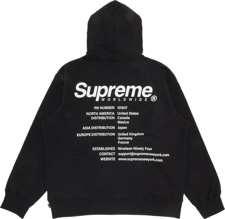 Толстовка Supreme Worldwide Hooded Sweatshirt 'Black', черный 36 593₽