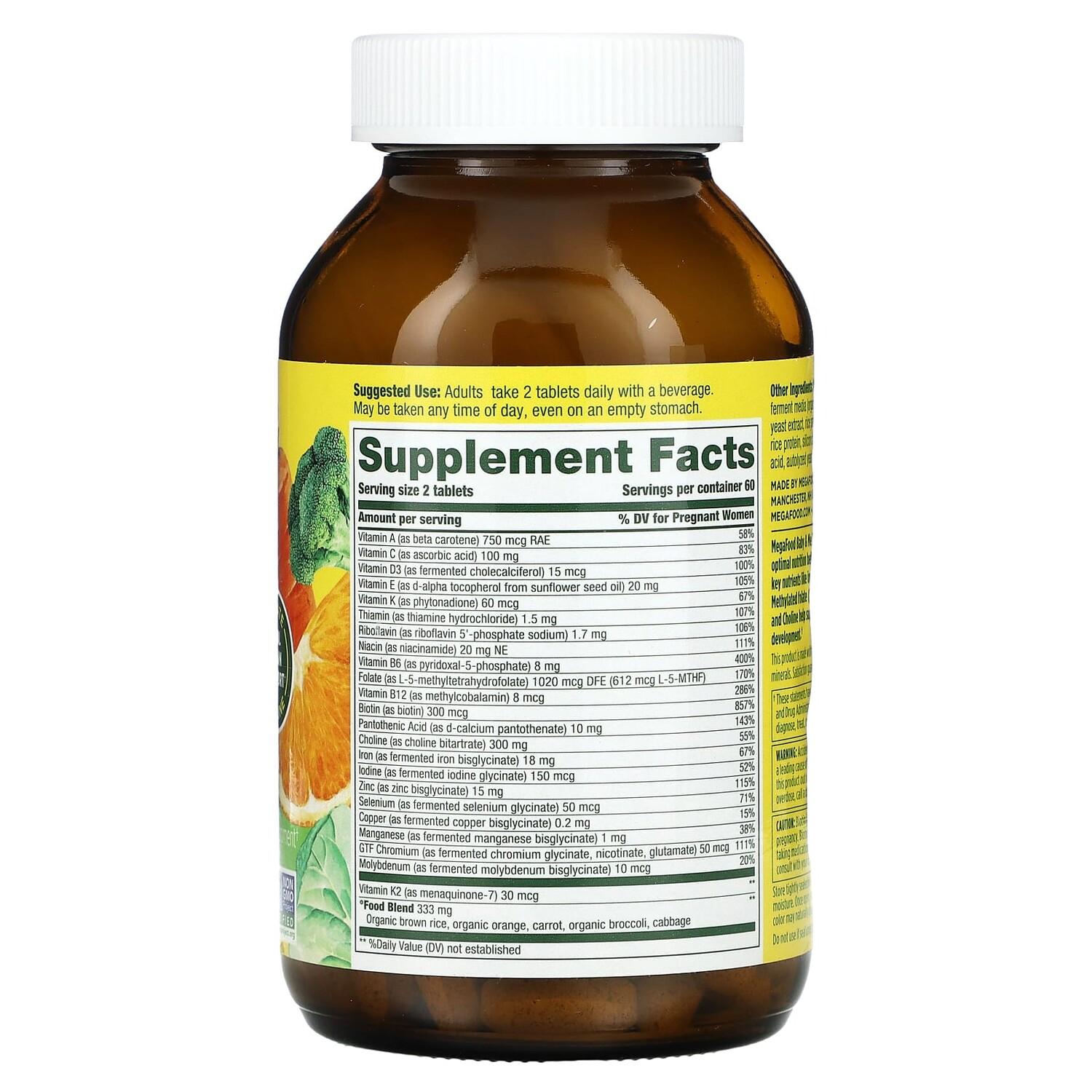 Baby&Me 2 Prenatal Multi от MegaFood поддерживает оптимальное питание до и во время беременности за счет определенных уровней железа, витаминов B12, B6 и D3. Холин и метилированный фолат (активная форма фолиевой кислоты) помогают поддерживать здоровье плода.