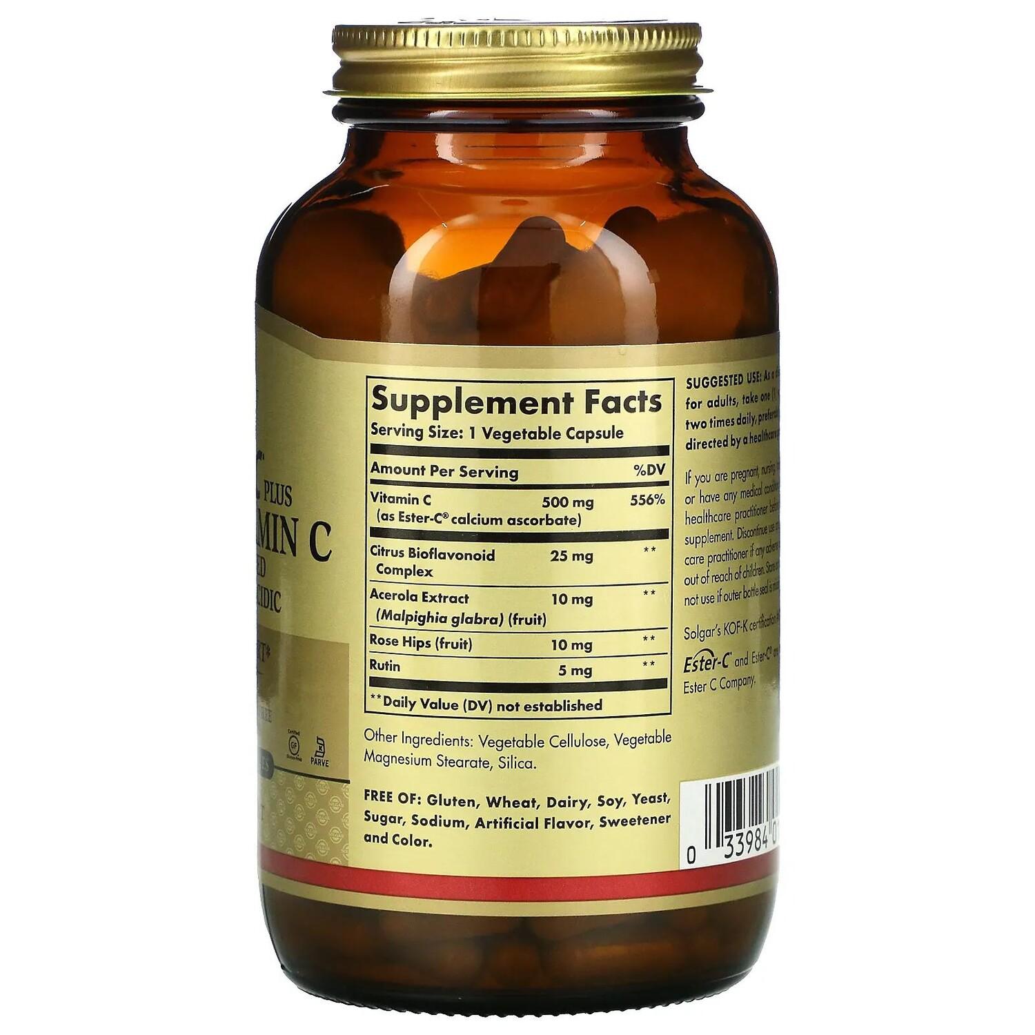 Ester-C Plus — это эксклюзивная формула, разработанная компанией Solgar, которая содержит уникальную форму витамина C Ester-C с нейтральным pH (без повышенной кислотности), не раздражающую желудок. Метаболиты витамина C в составе Ester-C способствуют удержанию витамина C в клетках, обеспечивая дополнительное преимущество. Для производства уникального комплекса метаболитов аскорбата кальция используется особая технология. Этот комплекс метаболитов хорошо удерживается в организме и содержит натуральные биофлавоноиды и ягоды ацеролы, а также плоды шиповника.