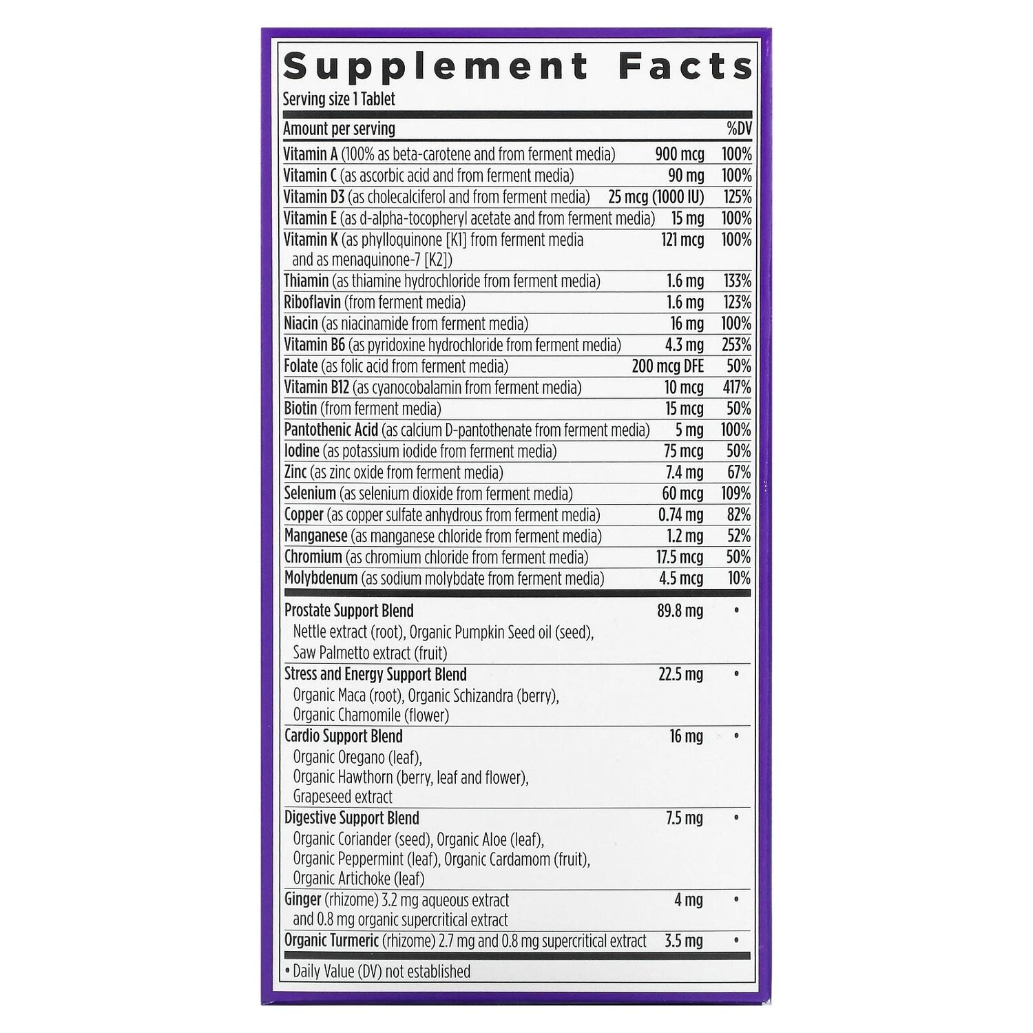 Идеальный состав: незаменимые питательные вещества, которые может распознать организм, ферментированные и смешанные с суперфудами и травами, в том числе с сереноей для поддержки простаты.
