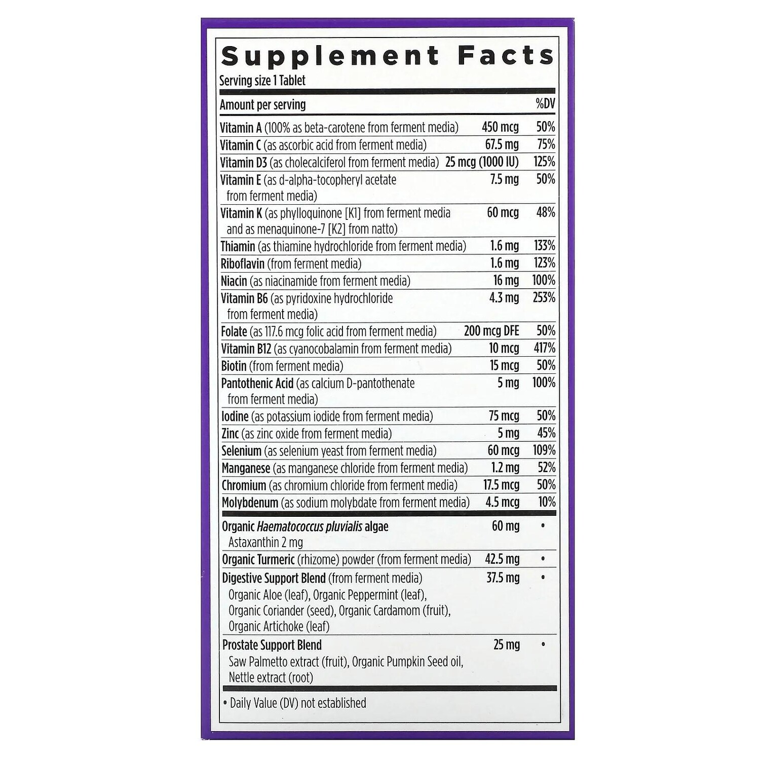 Специально разработано для удовлетворения комплексных потребностей мужчин старше 55 лет. Содержит питательные вещества для здоровья мозга, глаз, костей и простаты, а также для поддержки стресса, настроения, зрения и пищеварения, а также здоровья волос, кожи и ногтей. Не содержит железа.