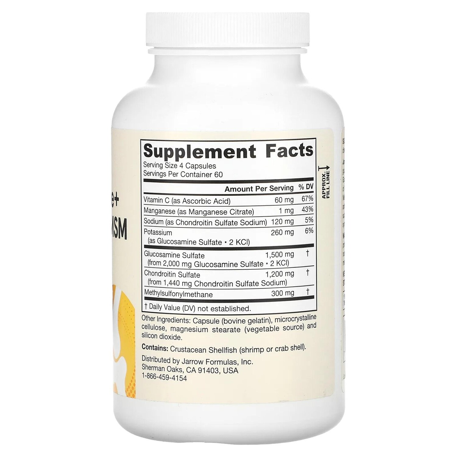 Глюкозамин сульфат от Jarrow Formulas не содержит натрия и стабилизирован хлоридом калия (KCl).