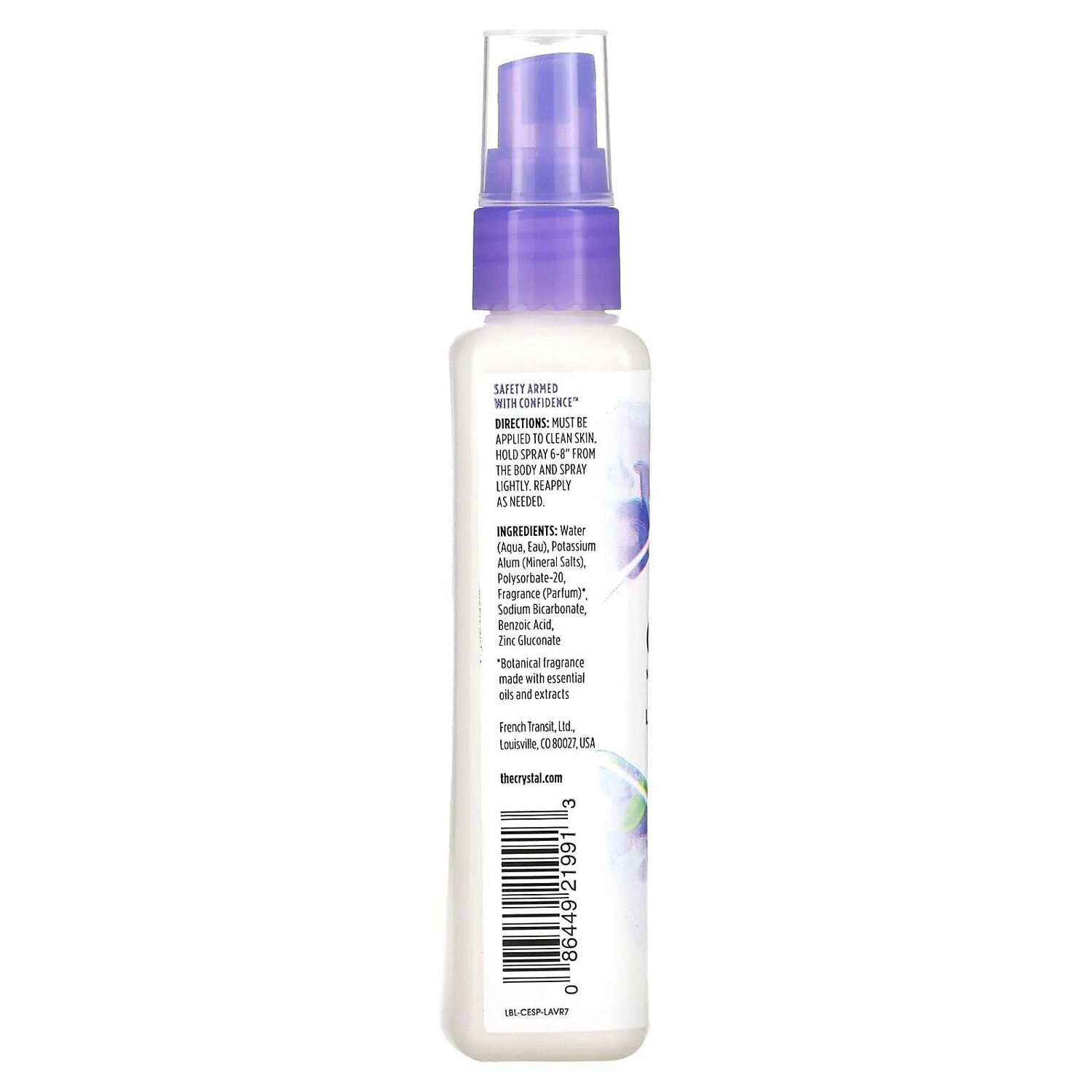 Спрей Crystal Deodorant, наполненный расслабляющими ароматами лаванды и белого чая, быстро высыхает, предотвращая появление неприятного запаха и создавая невидимый защитный барьер против вызывающих запах бактерий.