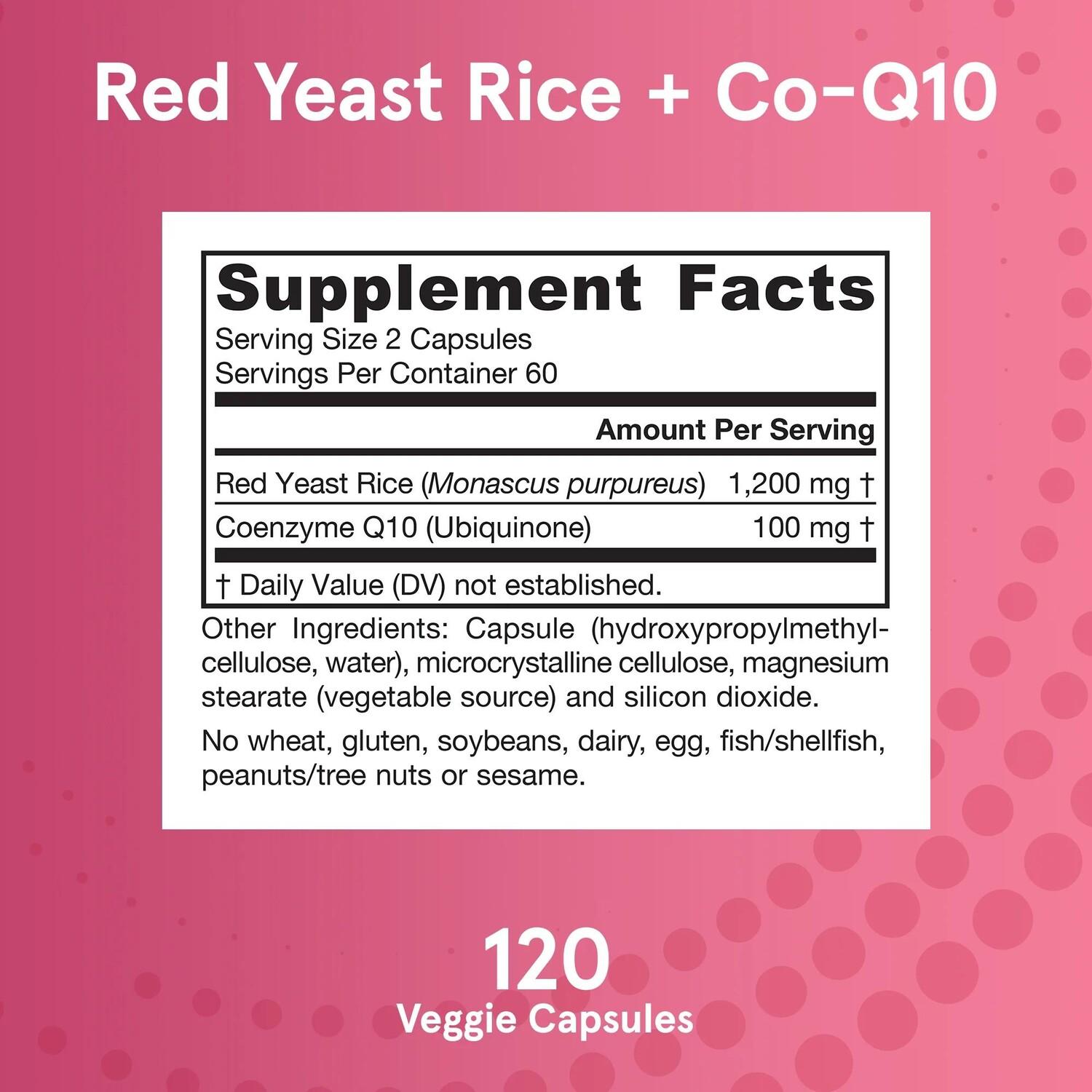 Красный дрожжевой рис - рис, ферментированный дрожжами Monascus purpureus, веками использовался в Азии в качестве пищевого консерванта, пищевого красителя и ароматизатора, а также в традиционных травяных формулах. Это часть рациона жителей Китая, Японии и азиатских сообществ США. Jarrow Formulas использует красный дрожжевой рис, который тщательно ферментируется, чтобы избежать присутствия цитринина, природного микотоксина. Коэнзим Q10 дополняет красный дрожжевой рис и поддерживает здоровье сердечно-сосудистой системы.