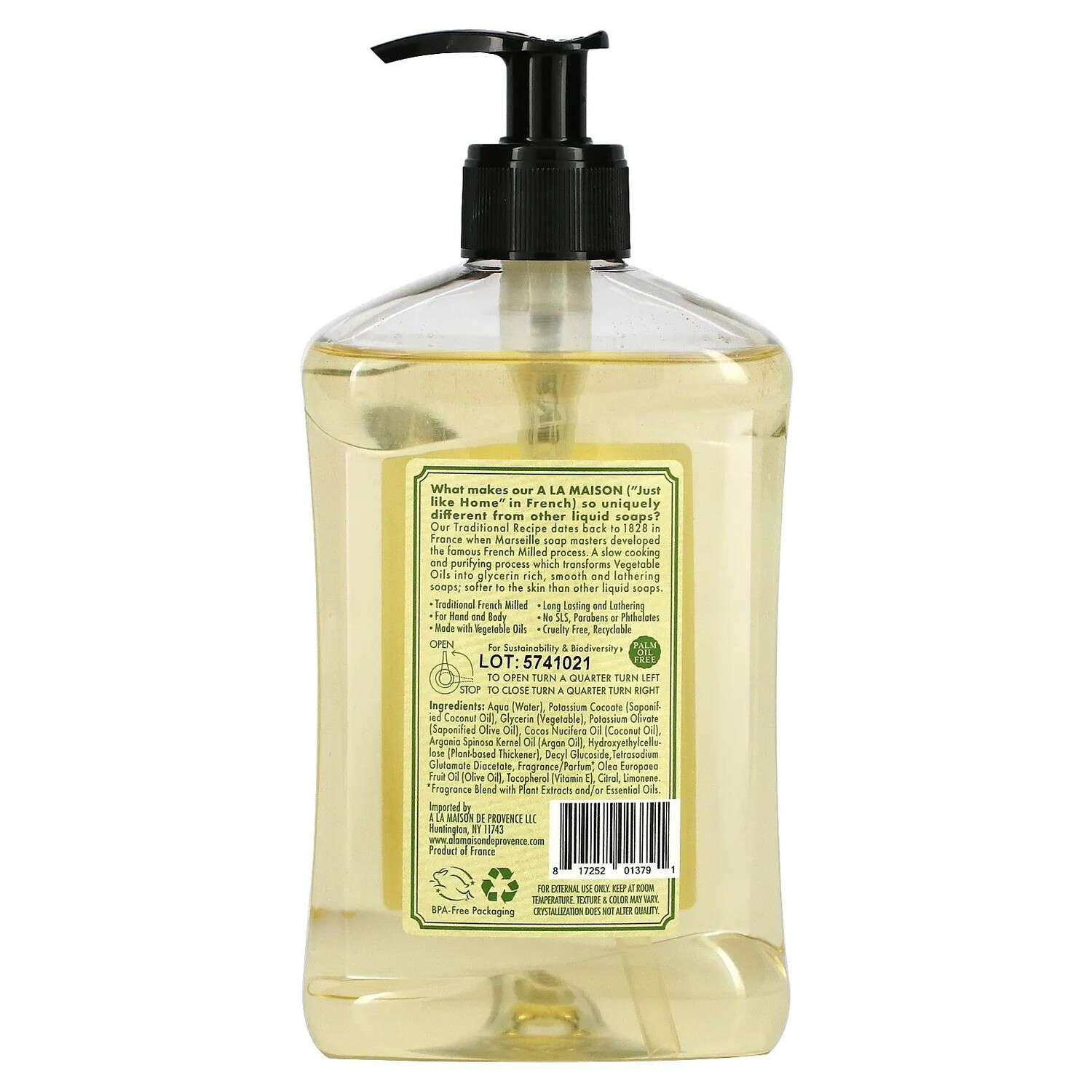 Наш традиционный рецепт создан в 1828 г. во Франции, когда марсельские мастера мыловарения разработали знаменитый французский способ изготовления. Медленный процесс приготовления и очистки превращает растительные масла в богатое глицерином, мягкое и обильно пенящееся мыло. Оно воздействует на кожу более бережно, чем другие жидкие мыла.