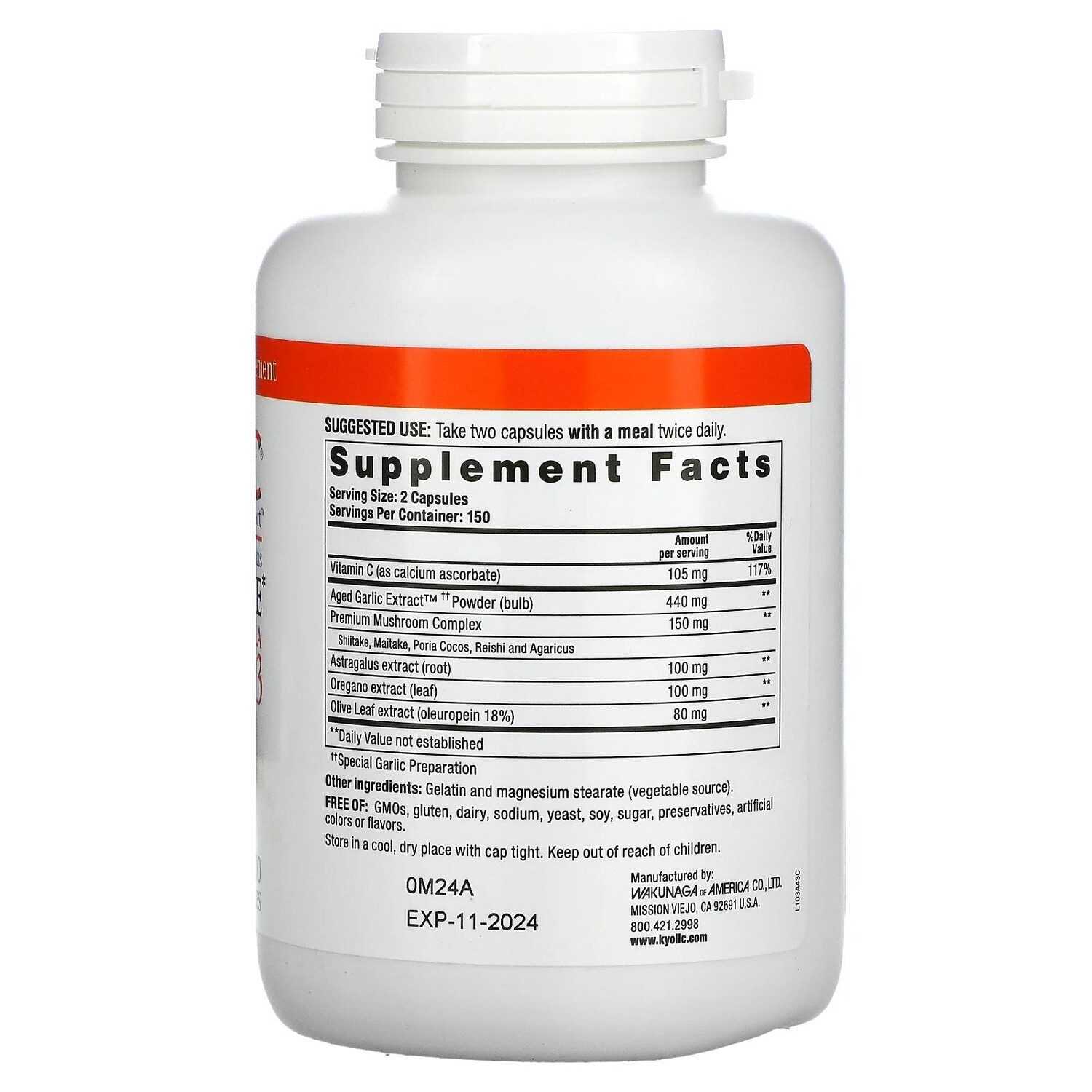 Состаренный экстракт чеснока от Kyolic получают из 100% органических† головок чеснока. Затем их состаривают путем уникального экстракционного процесса для устранения запаха и создания полезных соединений, содержащихся только в Kyolic. Это сочетание витаминов, грибов и трав помогает поддержать здоровый иммунитет.