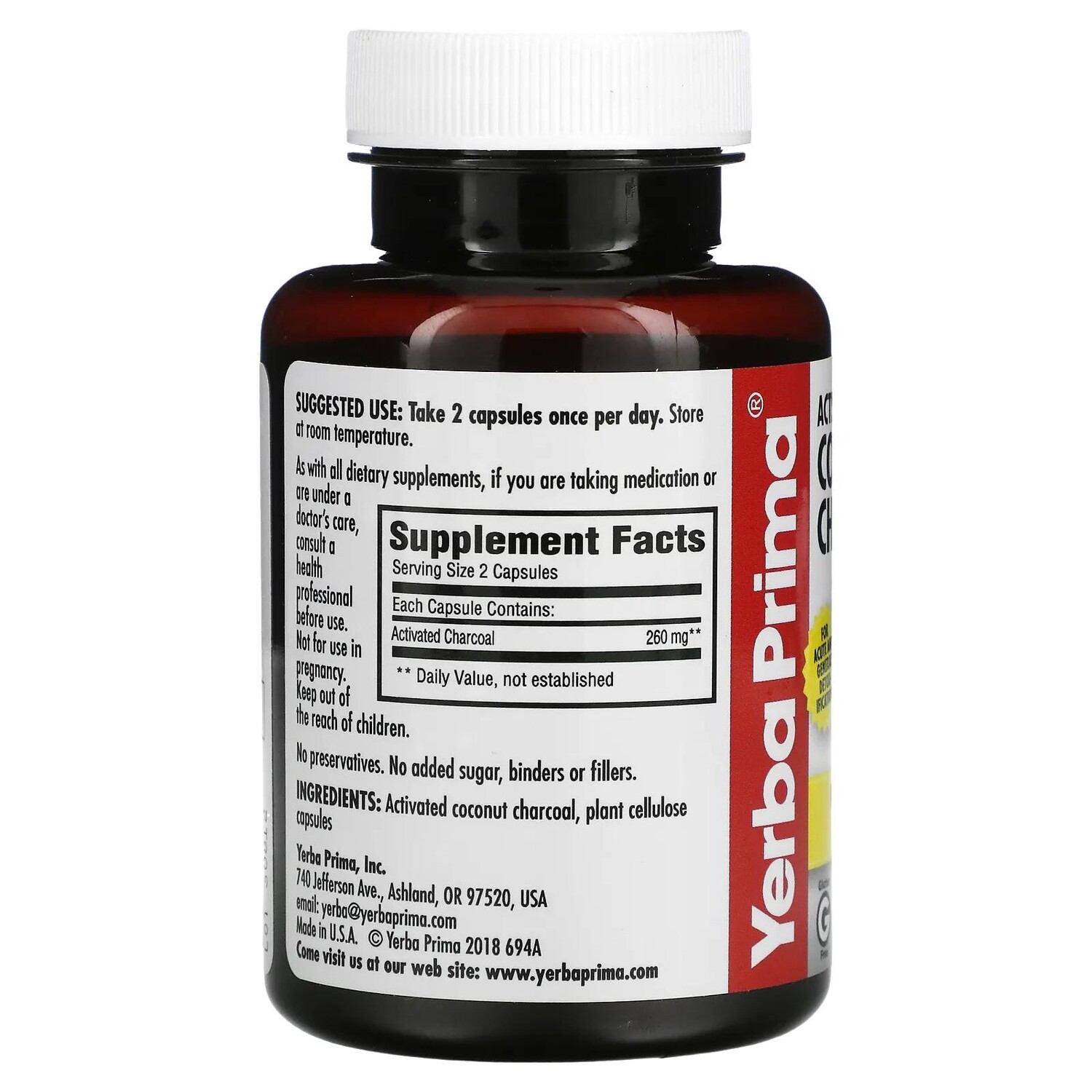 Yerba Prima Активированный кокосовый уголь 60 вегетарианских капсул