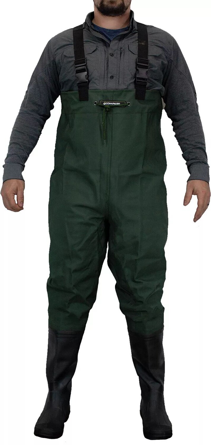 • Эти вейдерсы изготовлены из полиэстера плотностью 300 ден для внешней оболочки и вулканизированной резины. Эти вейдерсы представляют собой единое целое.