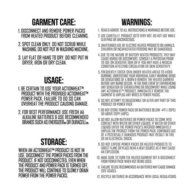 • Два ActionHeat Перчатки с подогревом.
