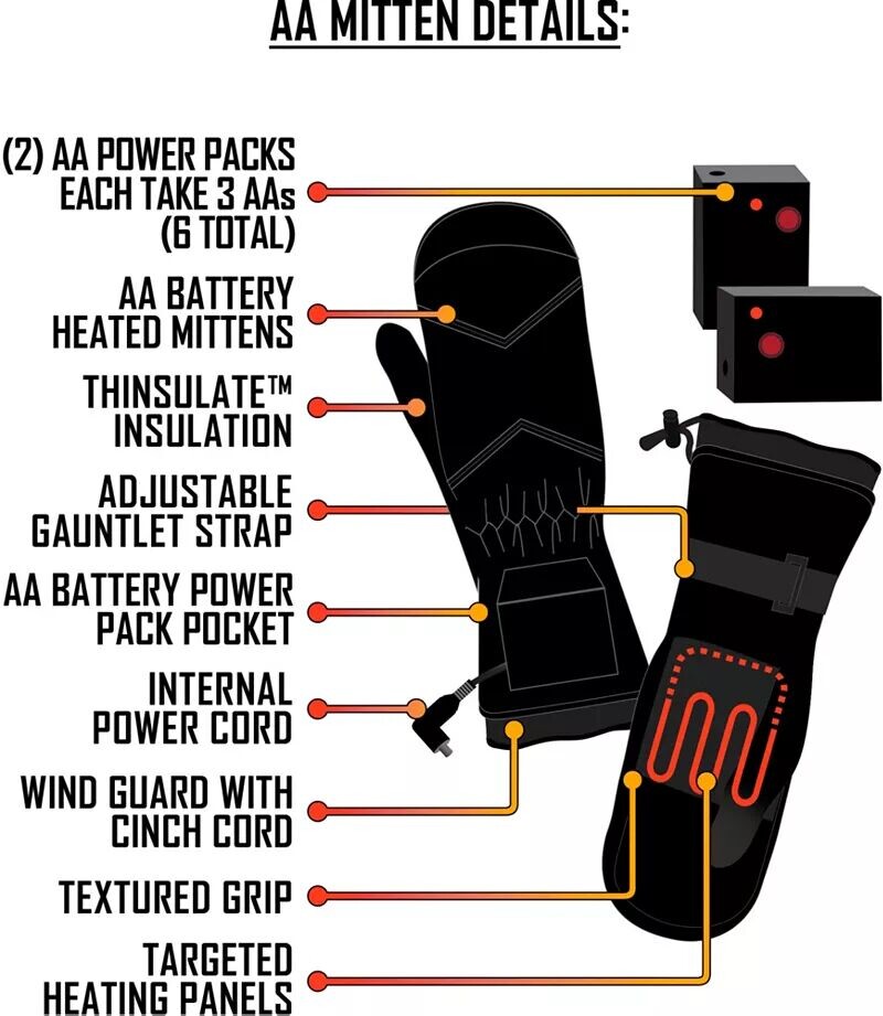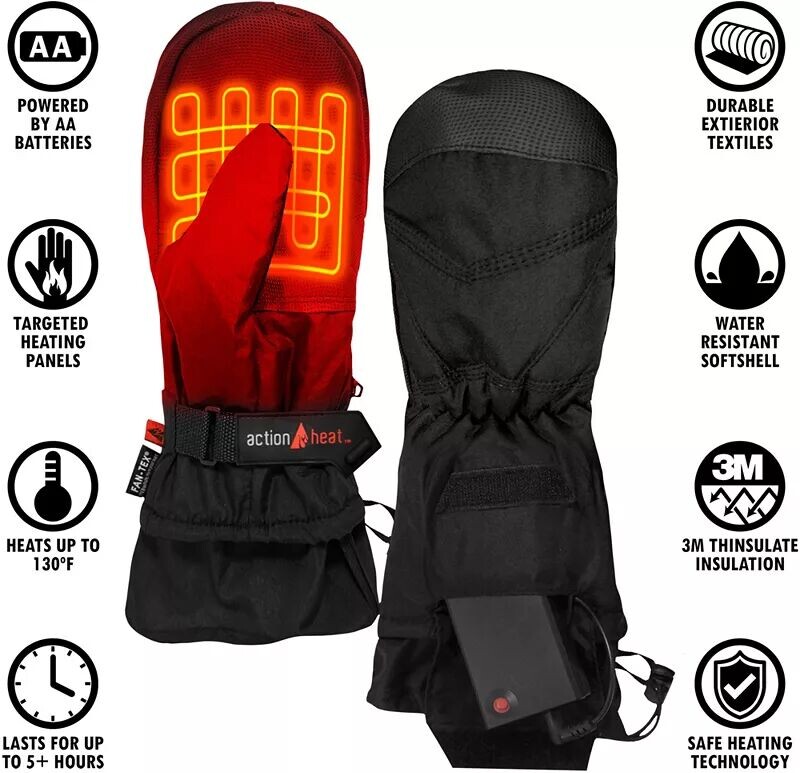 Варежки ActionHeat с подогревом на батарейках типа АА для взрослых, черный