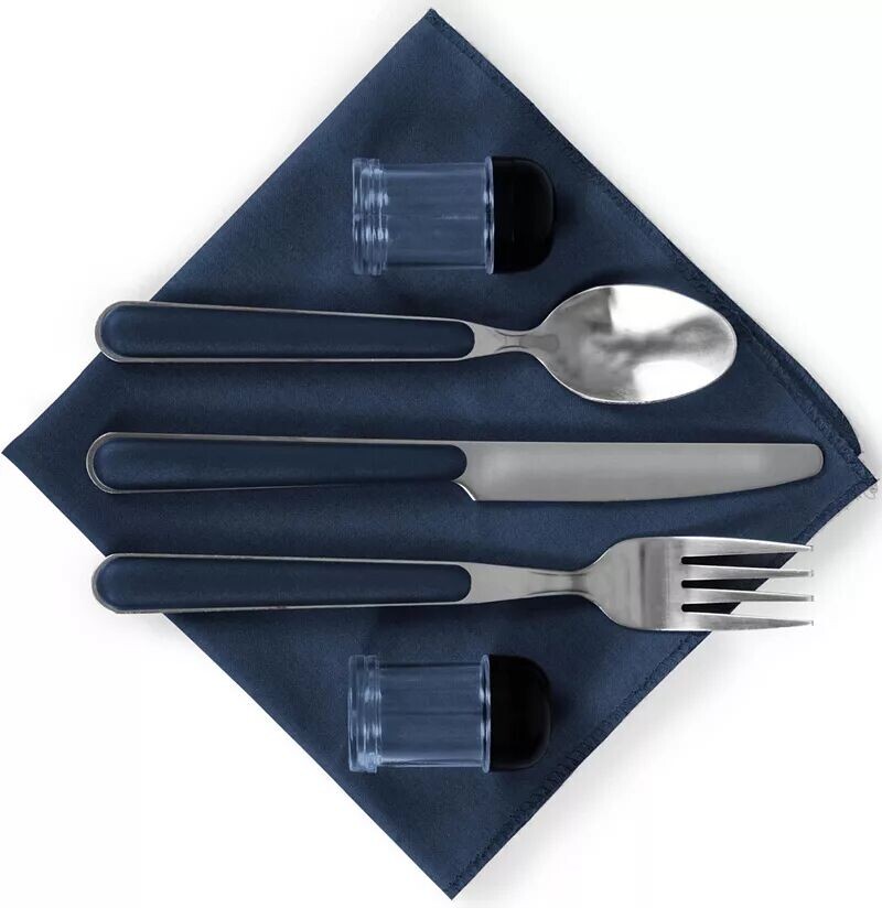• Секретное отделение, содержащее столовое серебро из нержавеющей стали, солонки и перечницы из матового стекла, а также салфетка из 100% хлопка.