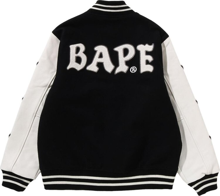 Куртка BAPE A Bathing Ape Relaxed Fit Varsity Jacket 'Black', черный
