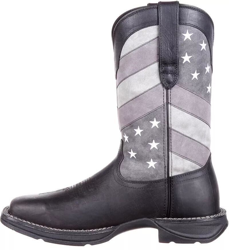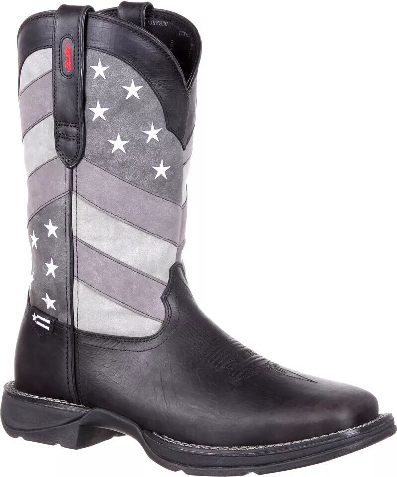 Направляетесь ли вы в любимый водопой или в дорогу с друзьями, мужские ботинки в стиле вестерн Durango Faded Black Flag создают стильный, смелый образ с патриотической привлекательностью. Эти ковбойские сапоги выполнены в серой цветовой гамме и украшены древком американского флага в деревенском стиле, придающим эффектный вид. Их стальной стержень и нескользящая подошва обеспечивают надежную поддержку и сцепление при ходьбе, езде и многом другом.