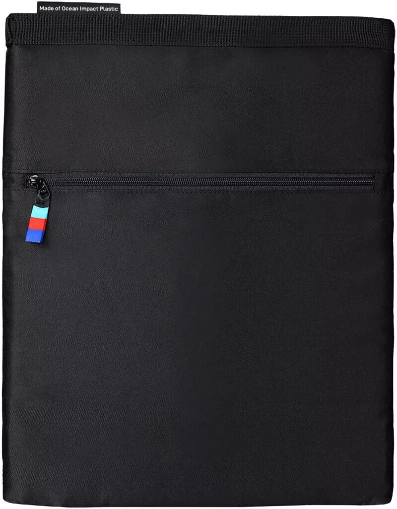 • Состав продукта: 59 % ткань Ocean Impact Plastic, 17 % другие переработанные материалы, 24 % непереработанные материалы (молния, пенопласт, пряжки).