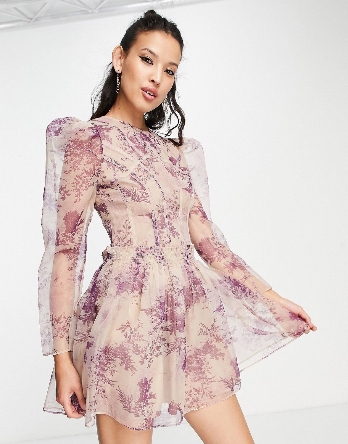 Фиолетовое платье мини из органзы со швами ASOS DESIGN
